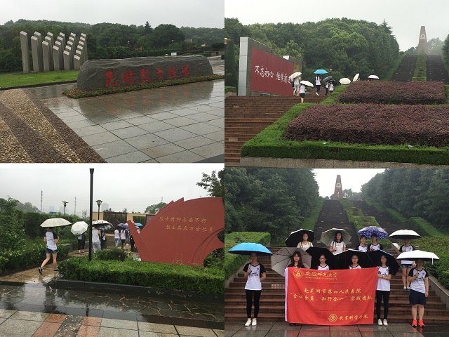 实践第六天,正值七月一号建党节,为缅怀革命烈士,弘扬爱国主义精神,队员们与上午九点前往芜湖市烈士陵园悼念革命英雄。在队长董文静的带领下,队员们有序的参观了中心广场和纪念碑陵墓凭吊区。大家在烈士墓碑前低头鞠躬并默哀,寄托了对烈士的哀思。随后,大家有认真听了队长董文静为队员们介绍一些革命烈士的英雄事迹。同学们深切体会到,今天的幸福生活是先烈们用生命换来的。队员们应当好好珍惜这来之不易的安稳生活,为祖国的未来做出贡献。