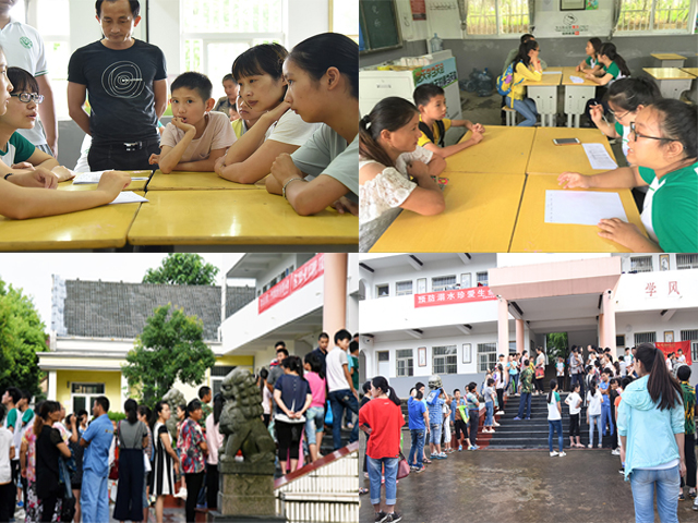 报名当天,前来咨询的家长络绎不绝,团队成员摆放了小学部与初中部两个展台供家长们报名咨询,接连不断的家长们早早的到达招生现场,排成一条长龙,尽管在场维护秩序和负责展台的队员们都累的口干舌燥,可当家长们咨询结束露出满意的笑容时,队员们都感到了充实与快乐。与此同时,从每一位家长眼中的急迫和每一个孩子兴奋的神情,可以看出这里的教育资源相对匮乏,学生以及家长对于教育有着强烈的渴望。队员们一方面感动于家长对于活动的理解于信任,同时也意识到自身的责任重大,大家都希望能够帮助这些家长减轻教育压力,也希望能给这些毕桥的孩子们带来精彩一夏,让他们在快乐中学习,在学习中成长。