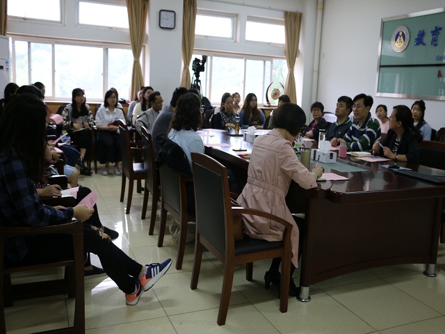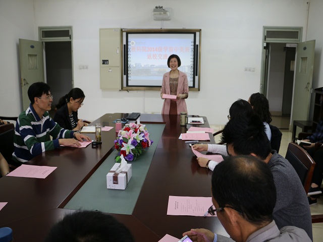 本网讯(教科院 随小莉)5月12日上午,教科院2014级学前中美班学生在经历了一年的留学生活后,成功返校,与学院师生在三楼会议室展开交流汇报。学院院长桑青松、党委副书记张如华、Dr.Sonia Robles、学前教育系全体师生参加了此次会议,活动由赵学菊老师主持。