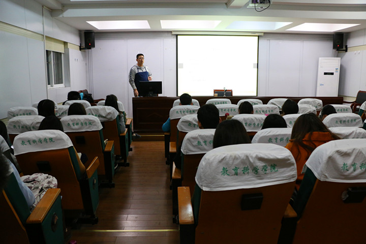 本网讯(魏文静/文 胡雪萍/图)为了使我院研究生进一步了解考博、寻找方向、明确目标,进一步奠定考博信心,提升学术水平。我院研究生会学研部于3月1日晚在学术交流中心组织举办“‘揭开考博之神秘面纱’赭麓·求索研究生学术论坛”讲座,由我院心理语言学专业的李朋博士主讲,15级、16级心理学专业研究生同学听取报告。