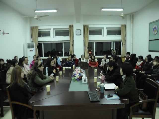 本讯网(教科院 图/张宇婷 文/徐莹)12月15日晚7点,为加强学前中美专业学生交流,促进中外合作办学发展,14级学前中美专业学生朱清源为中美专业学生开展了交流座谈会。学院副院长李宜江、院党委副书记张如华、布莱诺大学外派教师Emily、中美专业教师赵学菊、朱立新以及辅导员老师参加了此次交流会,会议由赵学菊老师主持。