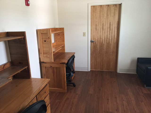 随后,张书记与龚伟老师进入学生宿舍进行了参观,根据之前的安排,学生被分配到了包括GuestsHouse、Youna Hall、New House等在内的多所公寓,目的就是加强与美国学生的交流,提升他们的英语表达能力。干净整洁的卧室,宽敞明亮的公共休息室,一切都是焕然一新,为了迎接远道而来的“新同学”,细心的室友甚至送上了祝福卡片,亲切友好的氛围扑面而来。