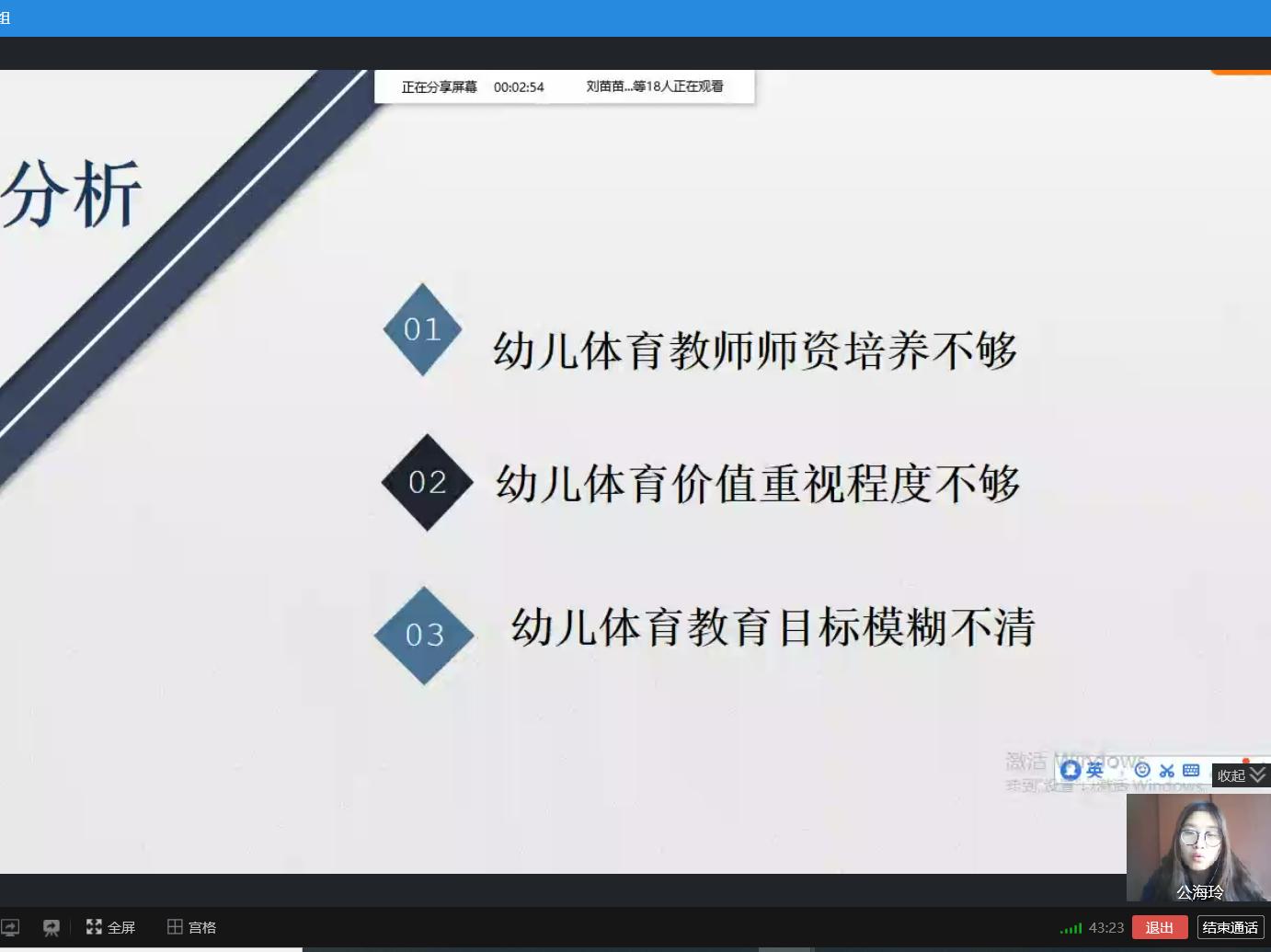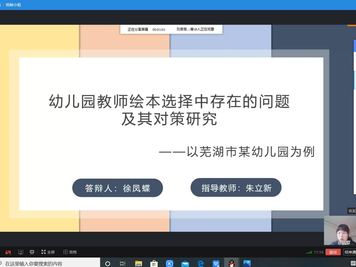 本网讯(朱怡然 林海欣)为提高本科生培养质量、提升毕业论文水平,学前教育专业根据学校和学院的相关要求,于2020年4月20日上午9时,在线上举行了2016级学前教育专业本科生毕业论文答辩工作。此次答辩工作共分为三组同时进行,实施导师回避制。第一组共17位学生参加,由朱立新、李晓博、张志华三位老师评审。第二组共16位学生参加,由赵学菊、童慧玲、翟清华老师评审。第三组共17位同学参加,由吴玲、王成刚、刘婷老师担任评审。