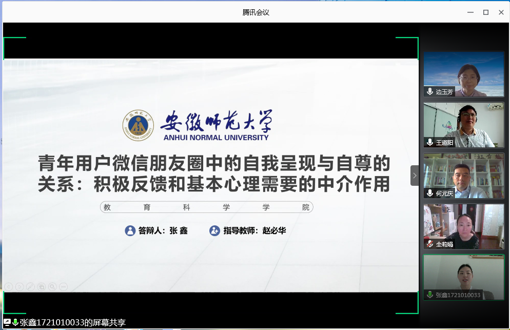 此次应用心理学专业的线上答辩,形式新颖、流程规范、组织有序。相对于传统的答辩形式,线上答辩在保证高质量的同时,更为机动灵活。通过本次线上答辩,答辩学生梳理了研究生阶段的学习成果;观摩本次答辩的同学,提前感受到了论文答辩的紧张氛围,了解了更多关于毕业论文撰写的信息,获取了学习研究的新思路。本次线上答辩的成功举办离不开学院领导、应用心理学专业负责人以及相关教职工的精心准备与协调,为我院未来的线上答辩活动积攒了成功的经验。