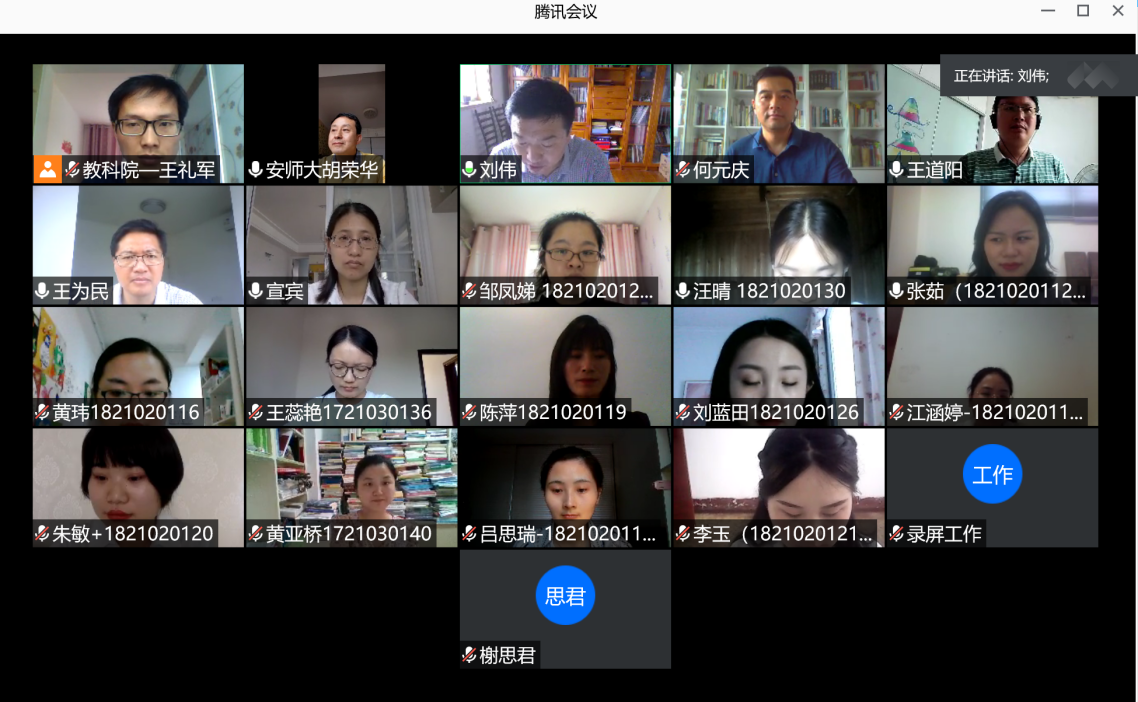 (本网讯 教科院 汪晴 王礼军/文)为贯彻落实党中央关于坚决打赢新冠肺炎防控阻击战总体战的精神,降低疫情对我院硕士研究生毕业和就业等造成影响,6月13日上午8时我院2018级心理健康教育专业硕士研究生在线上开展毕业论文“云答辩”工作,27名毕业生分为两组同时进行。参与答辩的专家共13人,其中答辩主席分别是上海师范大学刘伟教授和清华大学学生心理发展指导中心主任李焰教授,其他专家有芜湖市第四人民医院心理科副主任医师吴明飞、安徽师范大学附属中学正高级教师王为民及本校葛明贵教授等人,答辩秘书2人。答辩流程与传统答辩一致,主要包括毕业生汇报论文、专家提问、毕业生回答问题、专家评议及评议结果公布五个环节。答辩于12时30分结束。