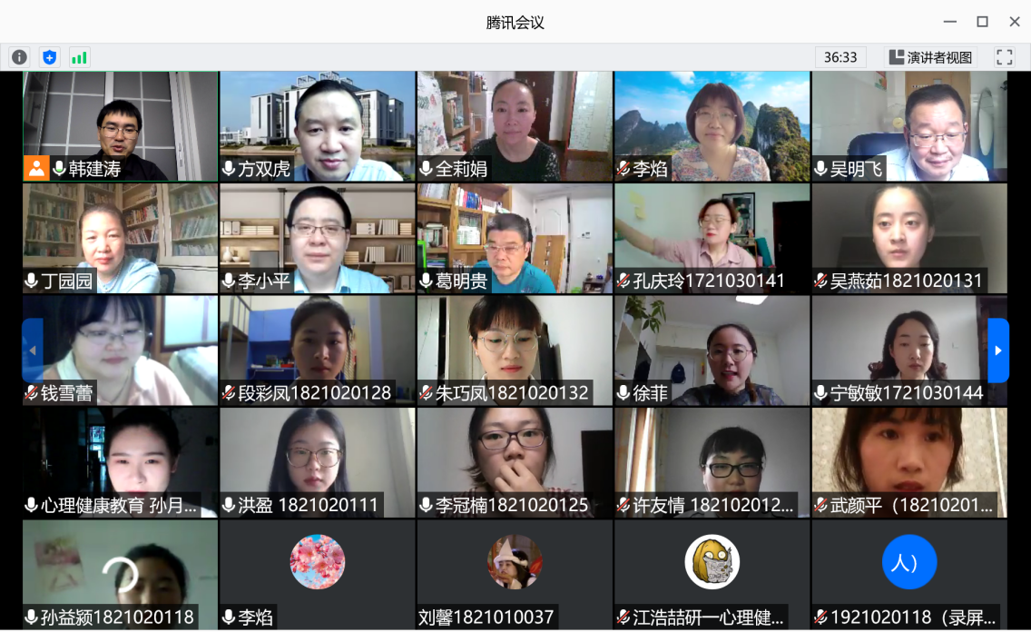 毕业论文答辩是决定研究生学位论文工作完成的重要环节,有利于毕业生更全面地审视学习成果存在的不足,对提高学位论文质量有重要的促进作用。根据学院工作安排,在正式答辩之前,毕业生们通过线上交流、视频预答辩等形式完成了论文重复率检测、预答辩、盲审等环节,并根据导师和评审建议进行修改。在学院、老师和毕业生们的共同努力下,2018级心理健康教育专业硕士全体毕业生已全部通过此次毕业论文答辩。