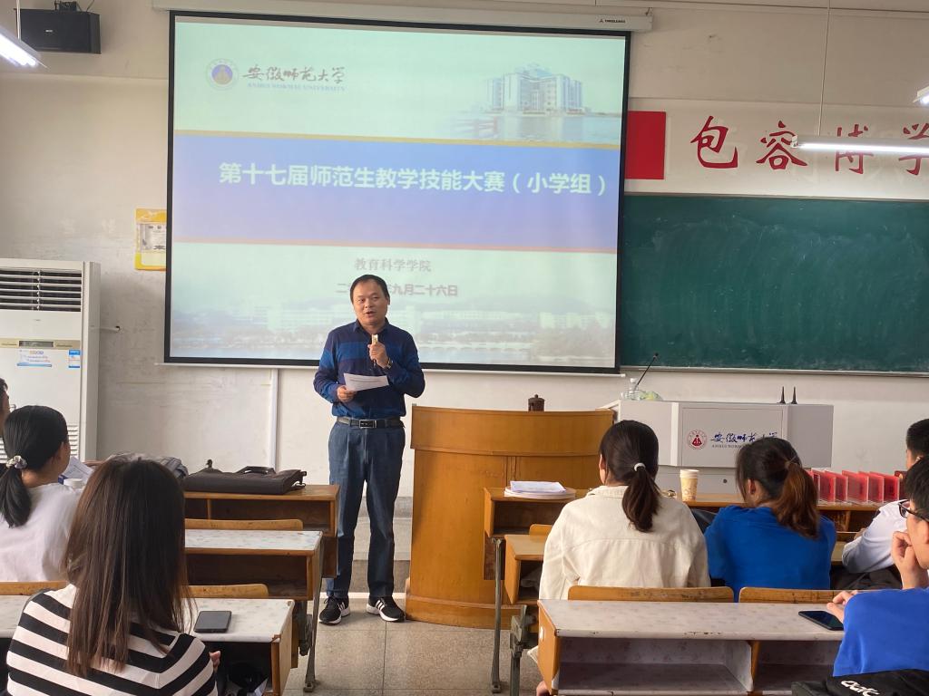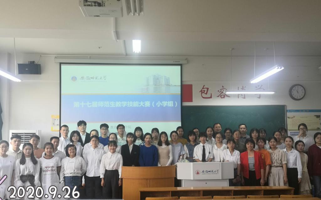 本网讯(教科院 方雯琪 刘标)9月26日,经过四个小时的激烈角逐,安徽师范大学第十七届师范生技能大赛(小学组)于赭山校区田家炳教育书院圆满落幕。本次大赛由教育科学学院承办、小学教育专业负责人王芳老师和2019级小学教育专业班委会组织实施。参赛选手包括2017、2018级小学教育、教育学专业,分设语文、数学、英语、科学、道德与法治等五个学科组比赛。比赛中41位同学各展本领,在竞争中尽显师大教科风采。