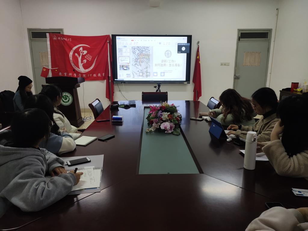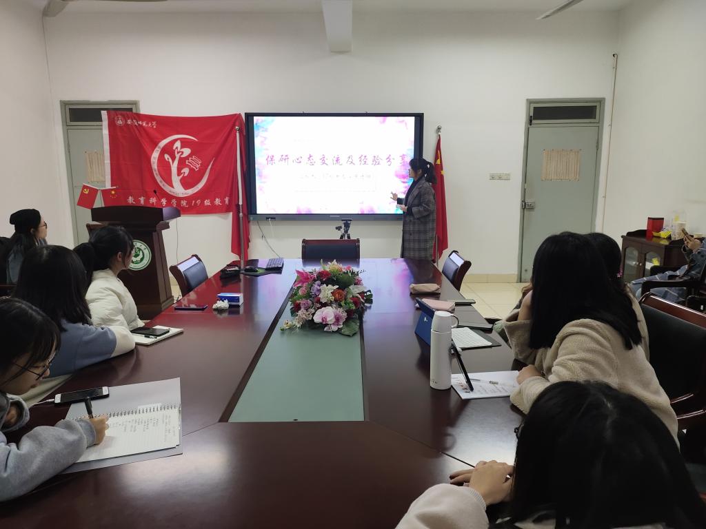 本网讯(文/张思雪 图/徐美宣)为了指引学生发展前景,做好学习生涯规划,2020年11月24日晚,2019级教育学专业于田楼B座308会议室顺利开展学习经验交流分享会。本次会议采取线上线下相结合的方式,特邀2015级教育学毕业生张皓南、2016级教育学毕业生肖玉业和高雪迎、2017级教育学陈丹阳、2018级教育学邓丽等五位同学分享学习经验,为2019级教育学本科生的生活、学业等方面指点迷津。