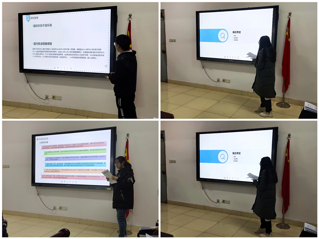 会议伊始,徐赟老师首先表达了对18级教育学专业全体同学的祝贺:全年级6个读书小组在导师指导下,获得4项国家级大学生创新创业训练计划立项、4项省级大学生创新创业计划立项,实现了大创项目“人人参与,全班覆盖”。其次,他简要介绍了创新创业项目的意义及会议总体流程。最后,他希望2019级同学珍惜此次“现场教学”的学习机会,为筹备2021年的项目申报筑基。随后,参加开题报告会的各项目组成员以专业的态度和饱满的精神风貌,通过PPT展示,分别就项目研究背景及意义、研究内容、研究方法、创新点分析和研究进度安排等方面做了详细介绍,同时也就研究过程中存在的疑难和困惑向各位教师请教指导。