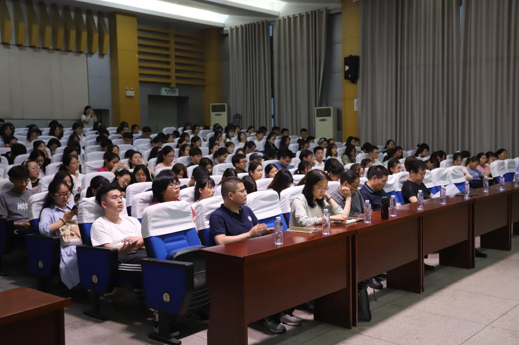 本网讯(教科院 程昕妍)2017级小学教育专业36名同学赴和县和萧县两地五所学校为期三个多月的教育实习于6月11日圆满结束。为了更好地交流实习经验和心得体会,6月16日晚19:00小学教育专业全体同学齐聚田楼报告厅召开教育实习总结大会。出席大会的领导、老师有教育科学学院党委书记方泓老师、院长李宜江老师、党委副书记杜凤老师、副院长辛治洋老师、副院长何海燕老师、小学教育专业负责人王芳老师、2017级小学教育专业导师滕曼曼老师、实习指导教师段兆兵和姚运标老师以及任课老师孙德玉、徐群、薛卫洋老师。大会由2018级程昕妍同学主持。