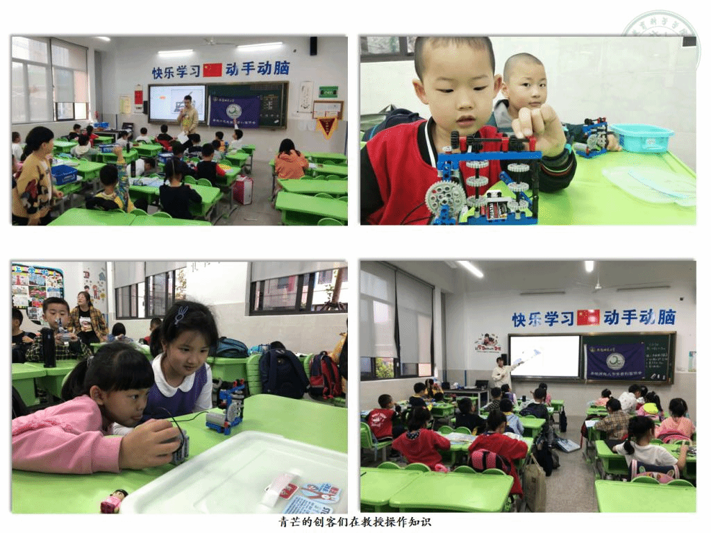 本网讯(教科院 高雅茹 陈泽明 陶佳)为着力推进国家级大创项目研究再上新台阶,教育技术学胡玉洁、高雅茹等在研大创项目负责人携手青芒创客协会及范晨晨、濮楠楠等研究生团队组成的青芒讲师团,本学期在安徽师范大学附属小学文昌校区、芜湖市第二十四中学试点“课后三点半”机器人和编程课程,讲师团共计为两所学校开课36次,受到师生好评。
