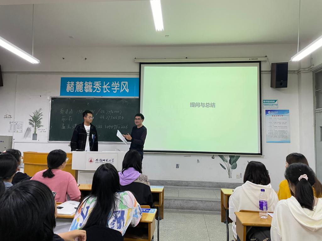 2018级心理学专业陶芮从自身保研经历出发,有针对性对新生的专业学习提出建议,学会主动学习,鼓励同学们广泛涉猎、积极争取参与各位老师课题组学术研究活动的机会,提升自身科研能力。孟玉洁从大学适应和成长两个方面展开交流,着重强调了心态调整、做好计划、学会坚持和学好英语的重要性,从学习的态度到方法帮助同学们更科学高效地进行大学学习和参加科创项目。