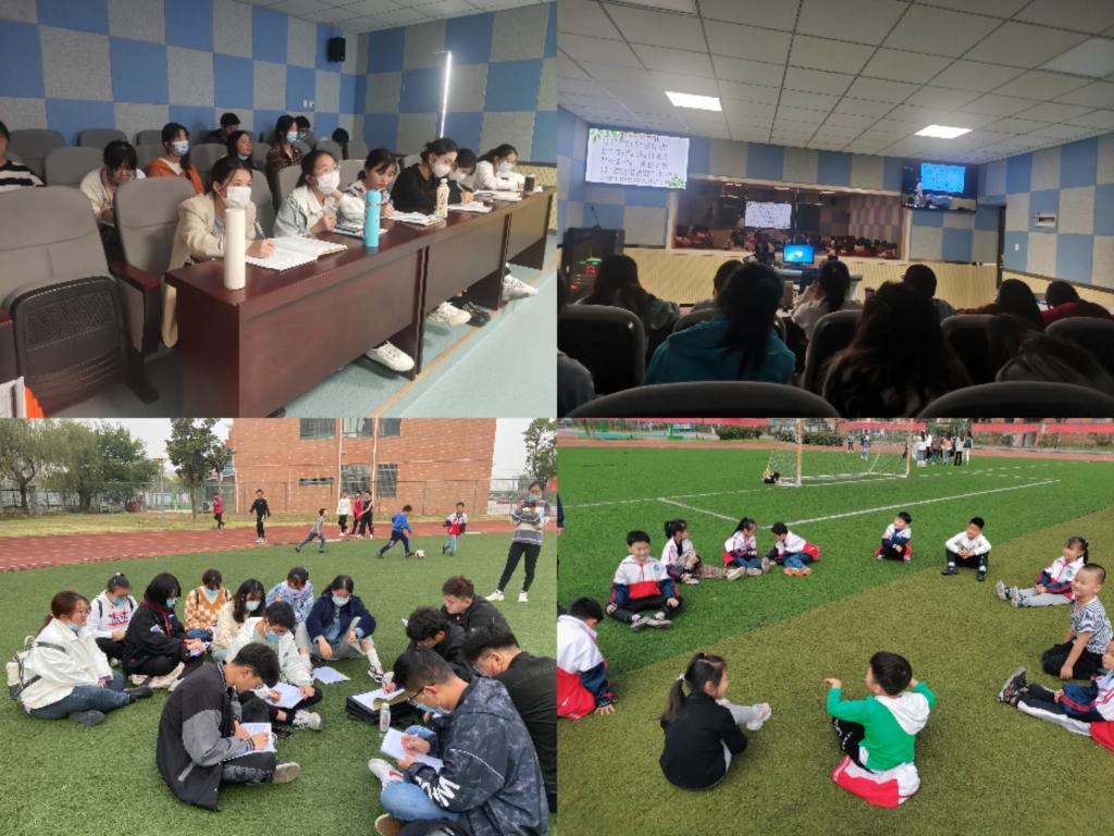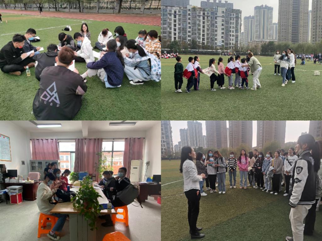下午,在教学交流环节,同学们以小组为单位到不同的班级中去观摩音乐、美术、体育三科的课堂教学,丰富同学们在音乐、美术、体育等学科方面的实践体验,开阔了同学们对教学内容组织、教学方法选择等方面的视野。最后,全班同学分成两组,一组去各年级办公室与一线教师进行面对面、一对一交流,另一组同学则在操场上通过组织各种游戏活动为一二年级小学生进行心理辅导。