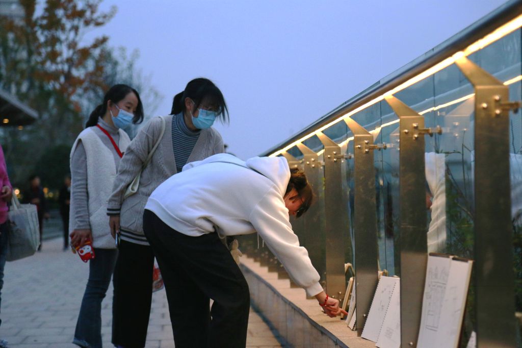 开幕式后,同学们与应天齐老师展开深入交流与互动。在交流中,同学们就芜湖古城的艺术设计纷纷提出自己的疑问,应天齐老师给与了耐心的解答。他说:“在古城的设计中,我们主要考虑三个方面,一是古城的街道设计和布局保持不变。因为芜湖从宋代开始整体街道规划就从未发生过改变,我们也希望能够得到保留。二是整个古城的界面和肌理不变。就是整个古城的建筑高低错落及建筑风格依然原汁原味。三是古城的天际线不变。在街道上看建筑物,建筑物和天空的交界点保持不变,这才使得古城的精华留了下来,让游客们感受到真正的古城风韵。”据悉,应天齐老师是芜湖古城的改造顾问,多年来对芜湖古城的改造和进一步发展做出了卓越贡献。