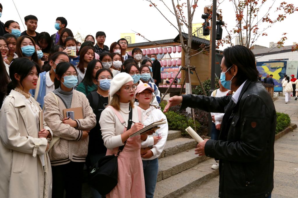 本网讯(教科院 张琦)为落实立德树人根本任务,提升小学教育专业学生核心素养,明确专业发展目标,提高设计基础课程学习的实践能力,11月20日下午,在张金广老师的带领下,2020级小学教育专业全体同学在芜湖古城开展艺术考察实践活动。一同参观的还有,芜湖市美协副理事长、深圳大学二级教授、安徽师范大学兼职教授应天齐老师。