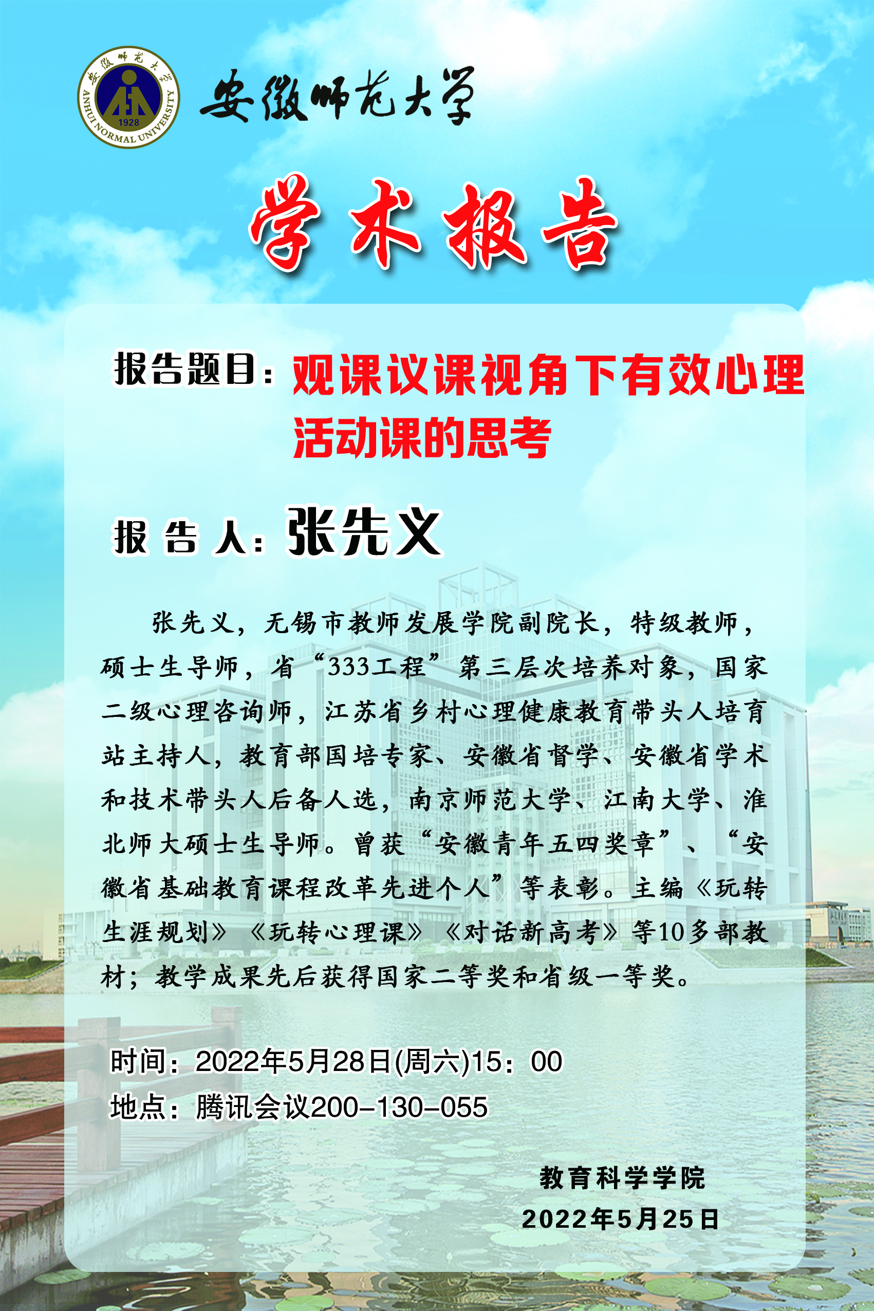 【学术预告】张先义:观课议课视角下有效心理活动课的思考