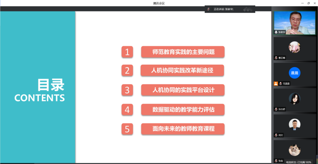 5月23日下午,浙江师范大学教师教育学院教育技术系主任张家华副教授应邀与我院师生开展线上学术交流,并作了题为《人机协同视角下师范教育实践改革与平台设计》的专题讲座。讲座通过腾讯会议举行,由我院教育技术系主任肖文主持,全体教育技术学、现代教育技术专业硕士研究生线上参会。