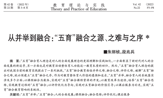 “五育”融合育人理念是对人的全面发展理念的更深理解和实践细化,一方面彰显了新时代对人的全面发展的新追寻,另一方面也是对教育活动整体育人功能这一教育本质的回归。然而,“五育”融合育人理念的提出对我国当前的教育实践提出了一系列挑战,“五育”融合教育面临并举之难、融合之难、评价之难。破解“五育”融合之难,就必须建立“五育”融合之序。作为对教育整体育人价值的遵循和追求,“五育”并举,融合育人的系统落实涉及多个方面:以课程融合为载体,实现对“五育”融合课程资源的开发;以教育改革为途径,培养“五育”融合思维,实现教育过程的“五育”融合;以评价优化为导向,实现对五育融合的价值引导;以课后服务为补充,实现“五育”融合教育影响的系统性。