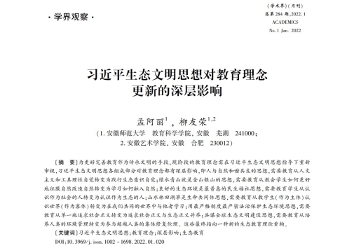 为更好完善教育作为传承文明的手段,现阶段的教育理念需在习近平生态文明思想指导下重新审视,习近平生态文明思想各组成部分对教育理念都有深层影响,即人与自然和谐共生的思想,需要教育从人文主义和工具理性自觉转变为践行生态意识自觉;绿水青山就是金山银山的思想,需要教育从教会学生如何更好地征服自然改造自然转变为学习如何融入自然;良好的生态环境是最普惠的民生福祉思想,需要教育学生从认识作为社会的人转变为认识作为生态的人;山水林田湖草是生命共同体思想,需要教育从教学生(作为主体)认识世界(作为客体)转变为在我们共同的世界中与他者学习;用最严格制度最严密法治保护生态环境思想,需要教育从单一地追求社会正义转变为追求社会正义与生态正义并举;共谋全球生态文明建设思想,需要教育从培养人类的环境管理转变为参与超越人类的集体修复伦理。这些最终指向一种新的生态教育理论重构。