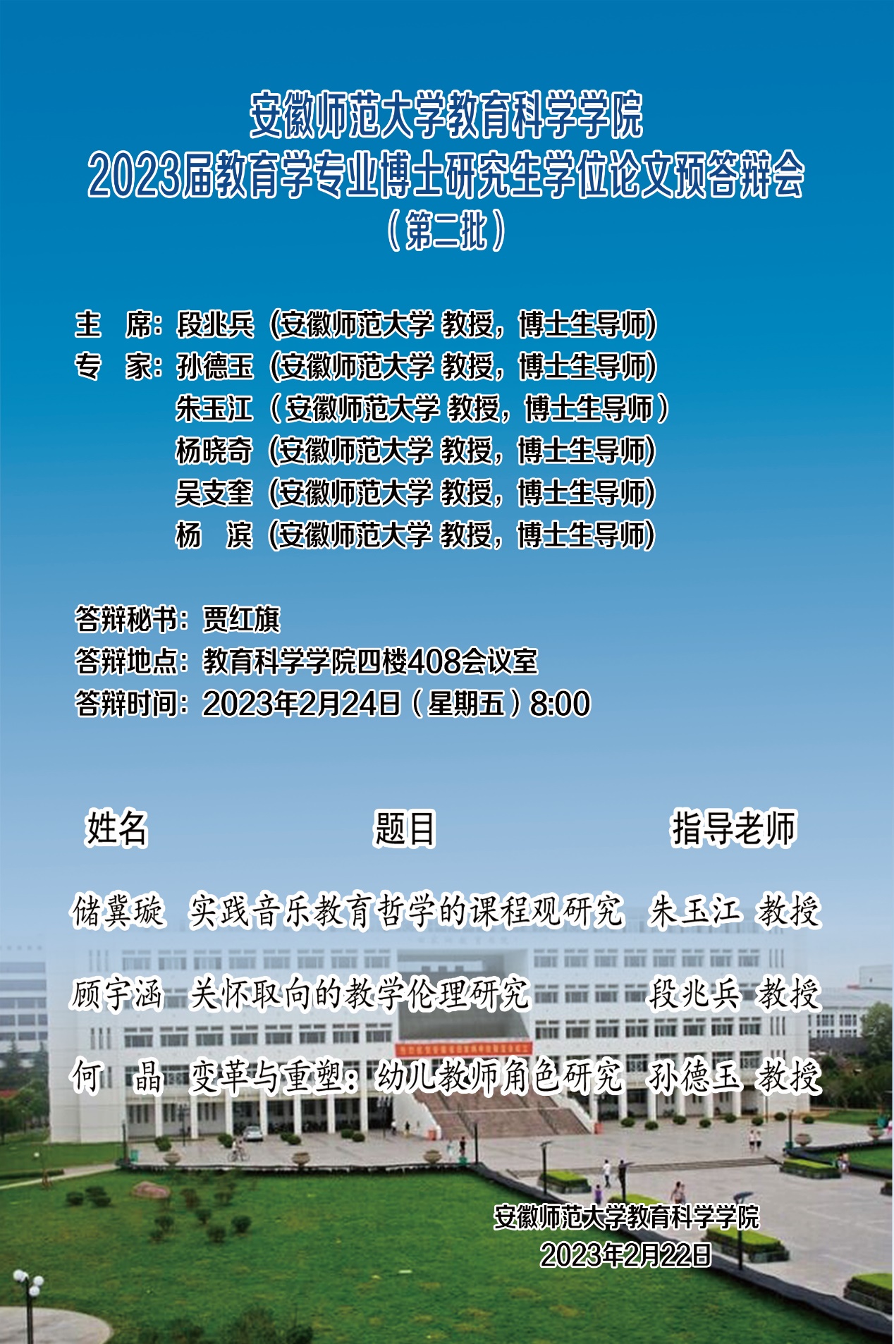 安徽royal皇家88平台2023届教育学专业博士研究生学位论文预答辩会(第二批)