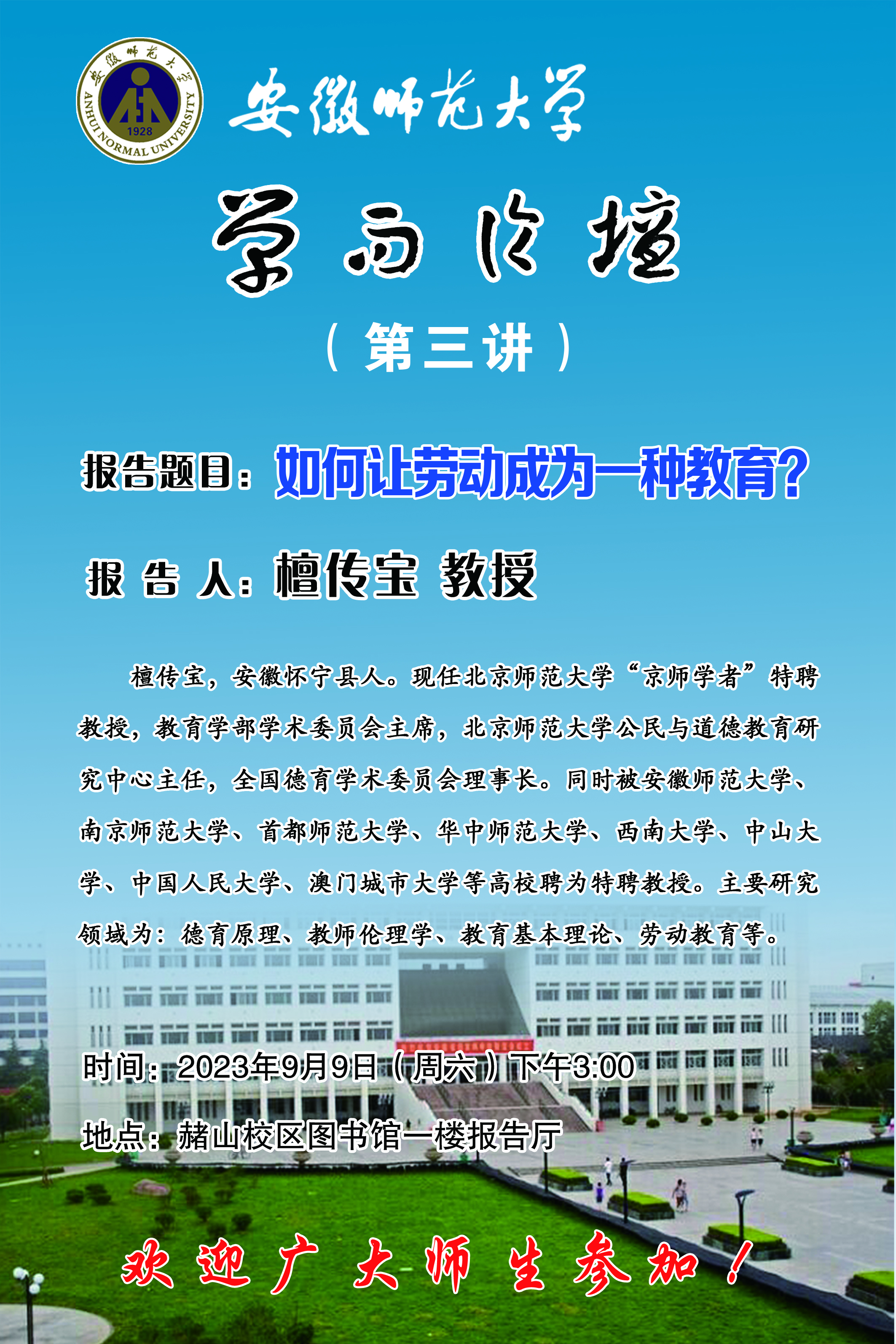 【学术预告】檀传宝教授:如何让劳动成为一种教育?