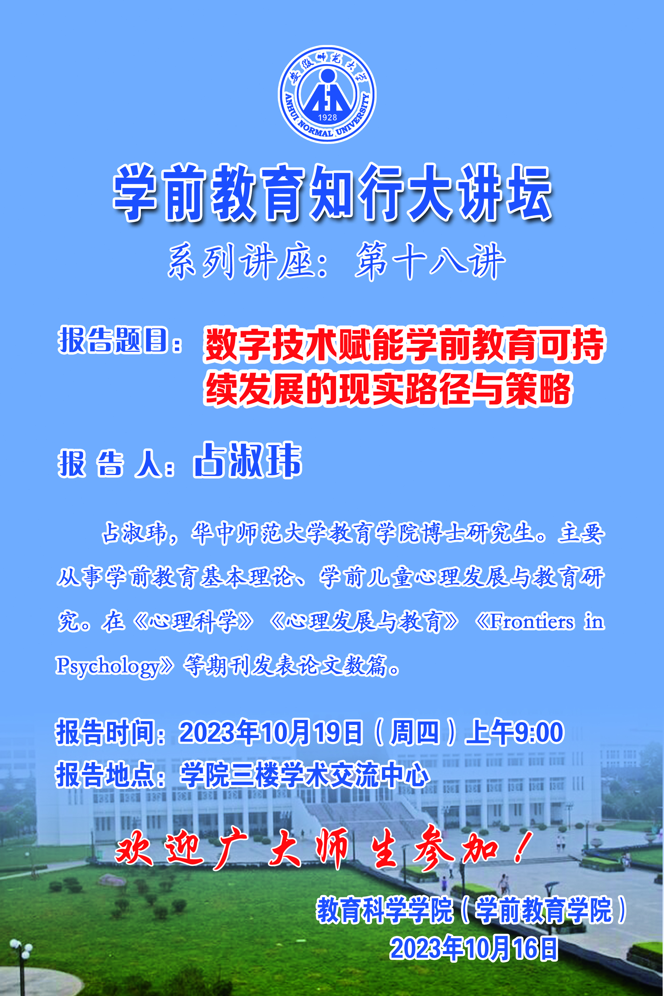 【学术预告】学前教育知行大讲坛第十八讲(占淑玮):数字技术赋能学前教育可持续发展的现实路径与策略