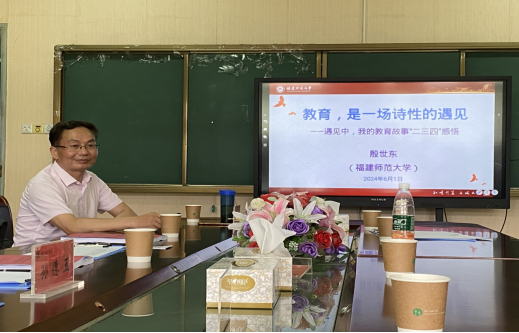 6月1日,福建师范大学殷世东教授应邀为学院师生带来《教育,是一场诗性的遇见》的学术讲座。学院22级和23级课程与教学论和小学教育等专业师生到场学习。