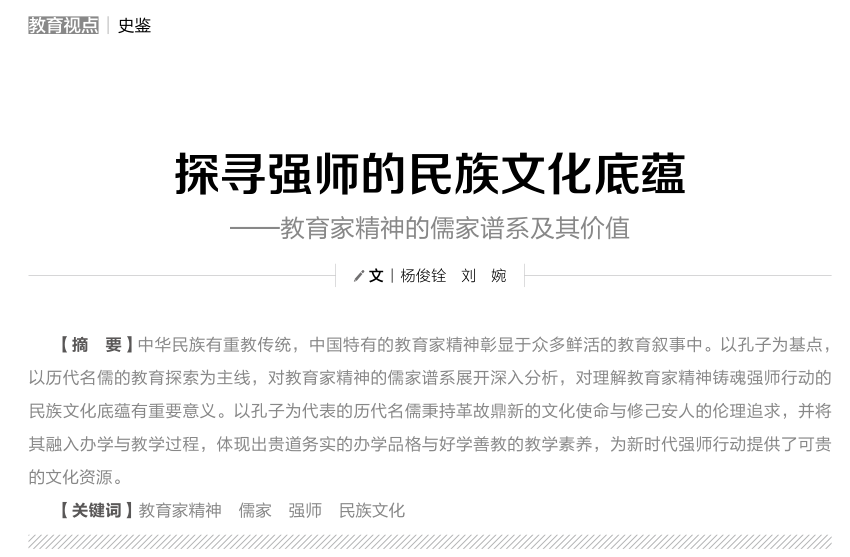 杨俊铨、刘婉:探寻强师的民族文化底蕴——教育家精神的儒家谱系及其价值