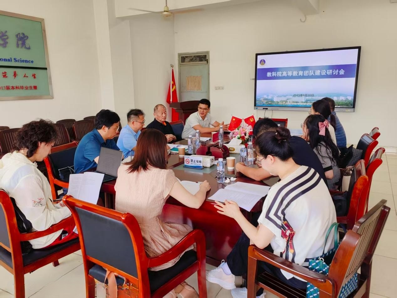 2025年8月30日,教育科学学院在308会议室成功举办高等教育团队建设研讨会。会议由徐红教授主持,特邀《江苏高教》主编沈广斌教授出席, 教科院吴文涛院长、李子华教授、周元宽教授以及肖龙、陈晨、江珊、吴颖等青年教师共同参加。