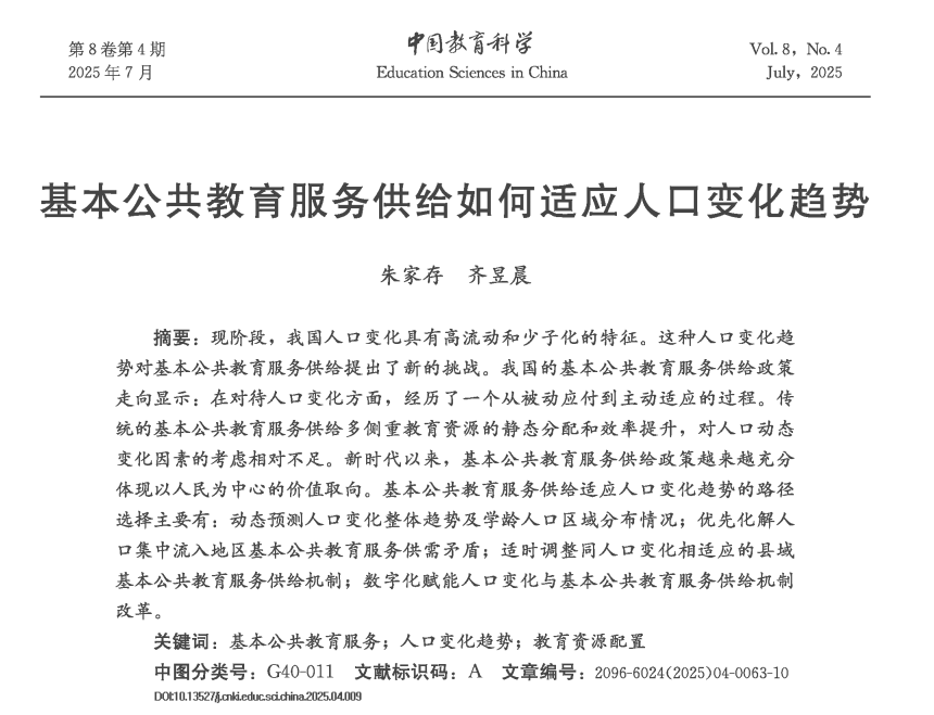 朱家存、齐昱晨:基本公共教育服务供给如何适应人口变化趋势