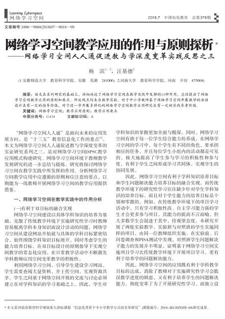 杨滨,汪基德 :网络学习空间教学应用的作用与原则探析