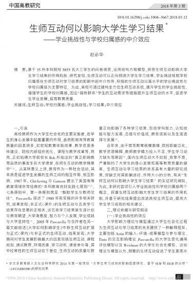生师互动何以影响大学生学习结果_学业挑战性与学校归属感的中介效应_赵必华.pdf
