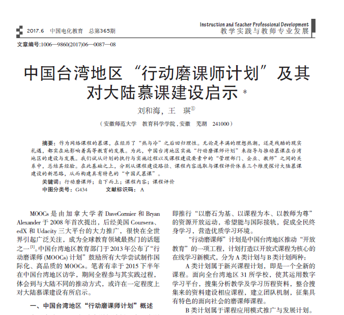 刘和海、王琪:中国台湾地区“行动磨课师计划”及其对大陆慕课建设启示