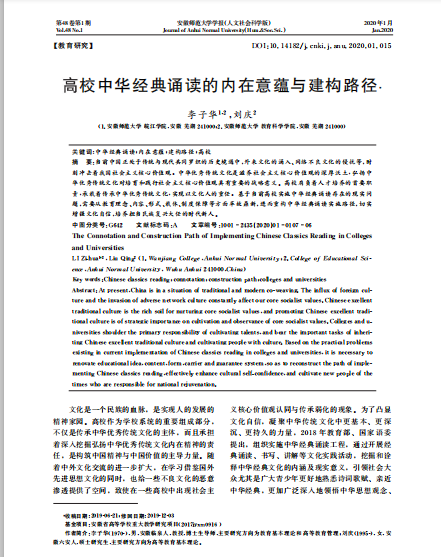 李子华,刘庆:高校中华经典诵读的内在意蕴与建构路径