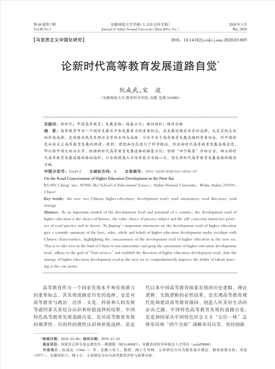 阮成武,宋波:论新时代高等教育发展道路自觉