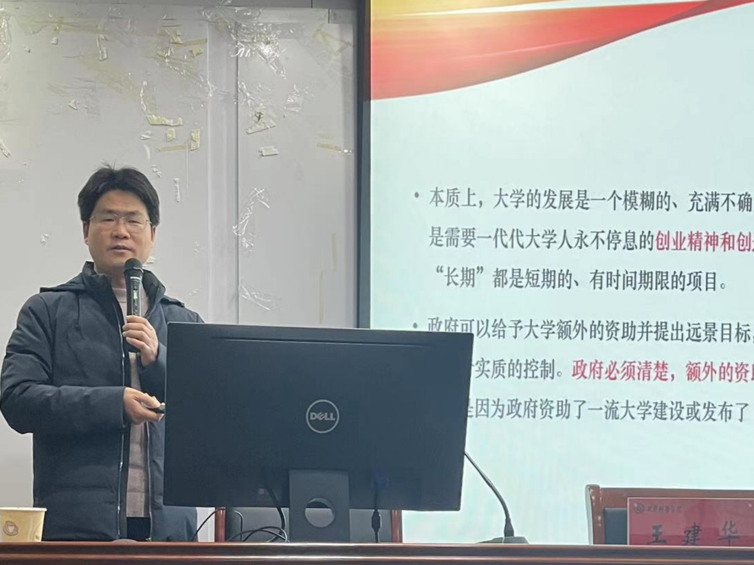 本网讯(教科院 /何亮 图/王薛晴)1月12日下午,南京royal皇家88平台博士生导师王建华教授应邀来我院作“教育计划、量化评估与一流大学”的主题讲座。本次讲座于教育科学学院三楼学术交流中心举行,由我院院长李宜江教授和我院金维才教授主持,高等教育学、教育学原理和课程与教学论等专业老师及研究生到场聆听学习。