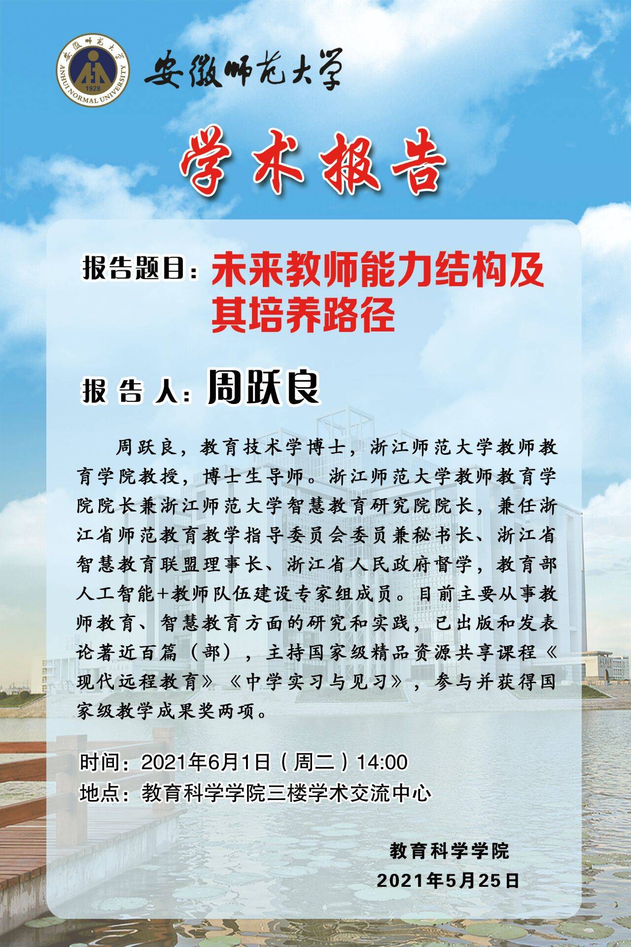 【学术预告】周跃良:未来教师能力结构及其培养路径
