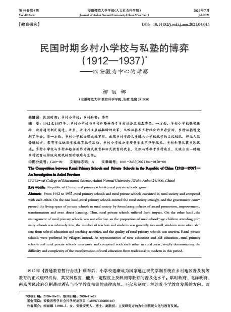 【教师科研】柳丽娜:民国时期乡村小学校与私塾的博弈(1912—1937)——以安徽为中心的考察
