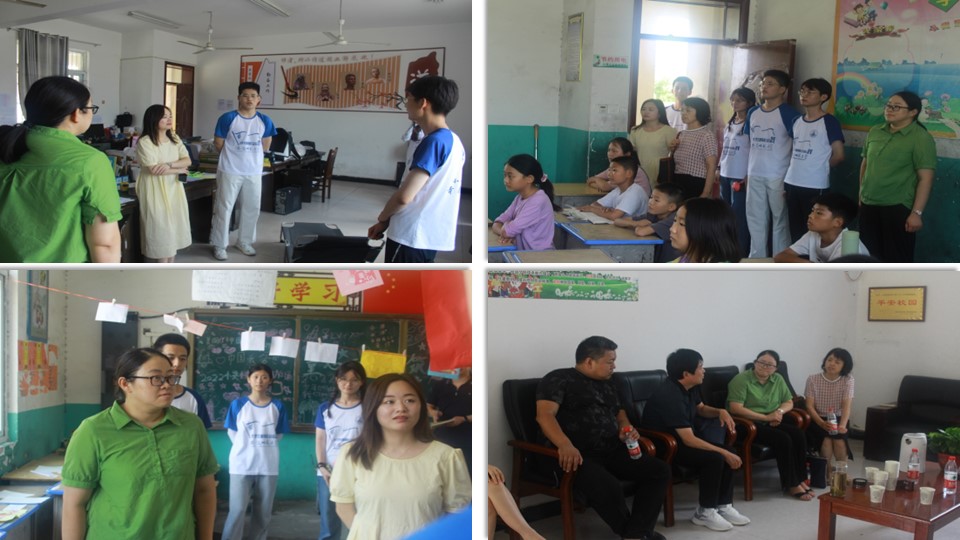领导老师们走进课堂深入了解团队成员的教学情况,实践团队的教学活动涵盖科技绘画、理论宣讲、团日活动红色教育等一系列内容,志愿者对待教学认真的态度得到大家一致认可和高度评价。志愿者领着领导老师参观了孩子们以“童心向党,筑梦未来”为主题的作品展,精美的手工作品,动人的科技绘画,工整的书法字体让领导纷纷称赞。