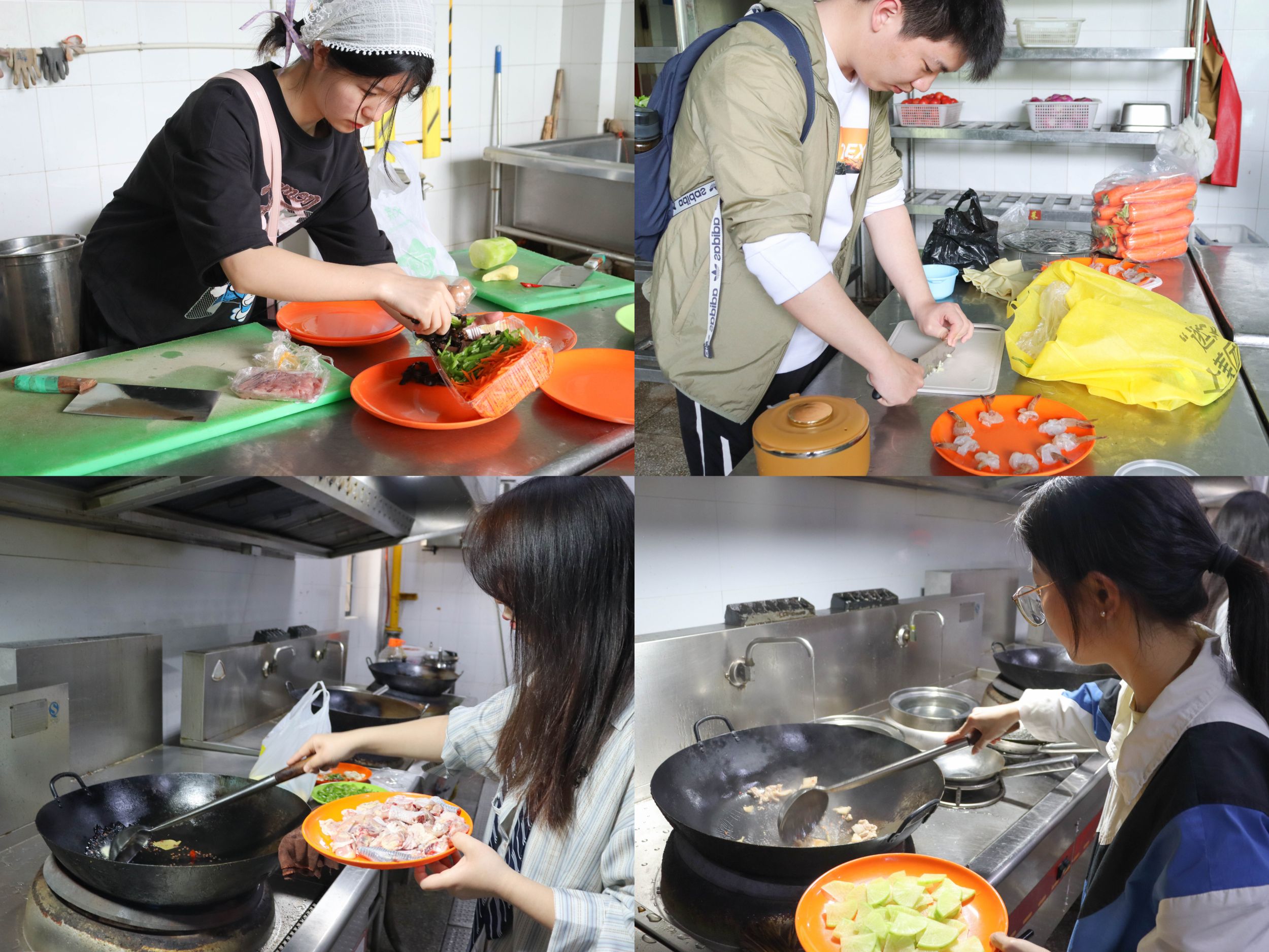 决赛于4月24日下午在赭山校区食堂举行,比赛分为菜品制作、菜品介绍、评委品尝点评三个环节。院学生会生活部工作人员以及食堂工作人员为选手们提供了场地和基本材料,选手们带着精心准备的食材,开启了自己的“厨艺之旅”。从精心挑选的食材到巧妙搭配的菜品,每一位参赛者都以满满的热情和无限的创意将平凡的厨房变成了展示才华的舞台。切菜、翻炒、颠锅,选手们在展现高超厨艺水平和菜品创新能力的同时,为现场评委呈现了一场视觉和味觉的盛宴。蒜蓉开背虾、鱼香肉丝、辣椒炒鸡……评委们对同学们的厨艺表现赞不绝口。