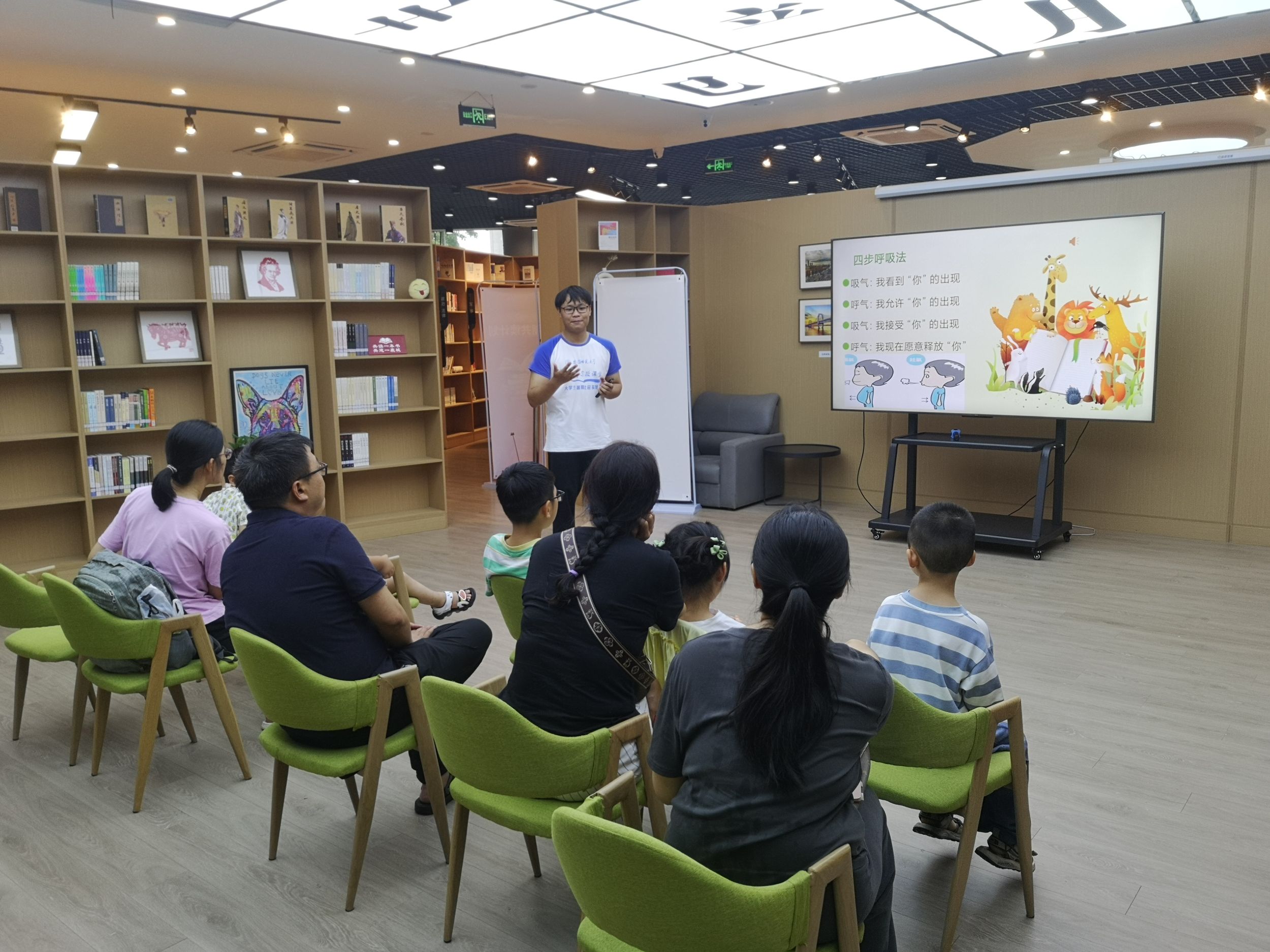 为护航儿童心理健康成长,展现心理知识的魅力,教科院全心全益赴芜湖市镜湖书苑“心灵启梦旅,情暖逐光行”本科生社会实践团队于7月11日上午9点开展了“我是情绪的主人”专题心理知识科普活动。本次活动共招募5名幼儿园至小学学龄段的小朋友们,团队指导老师金剑及学生家长陪同参与。本次科普活动由程飞同学主讲,陈忠、杨硕等7名同学在场进行辅助工作。