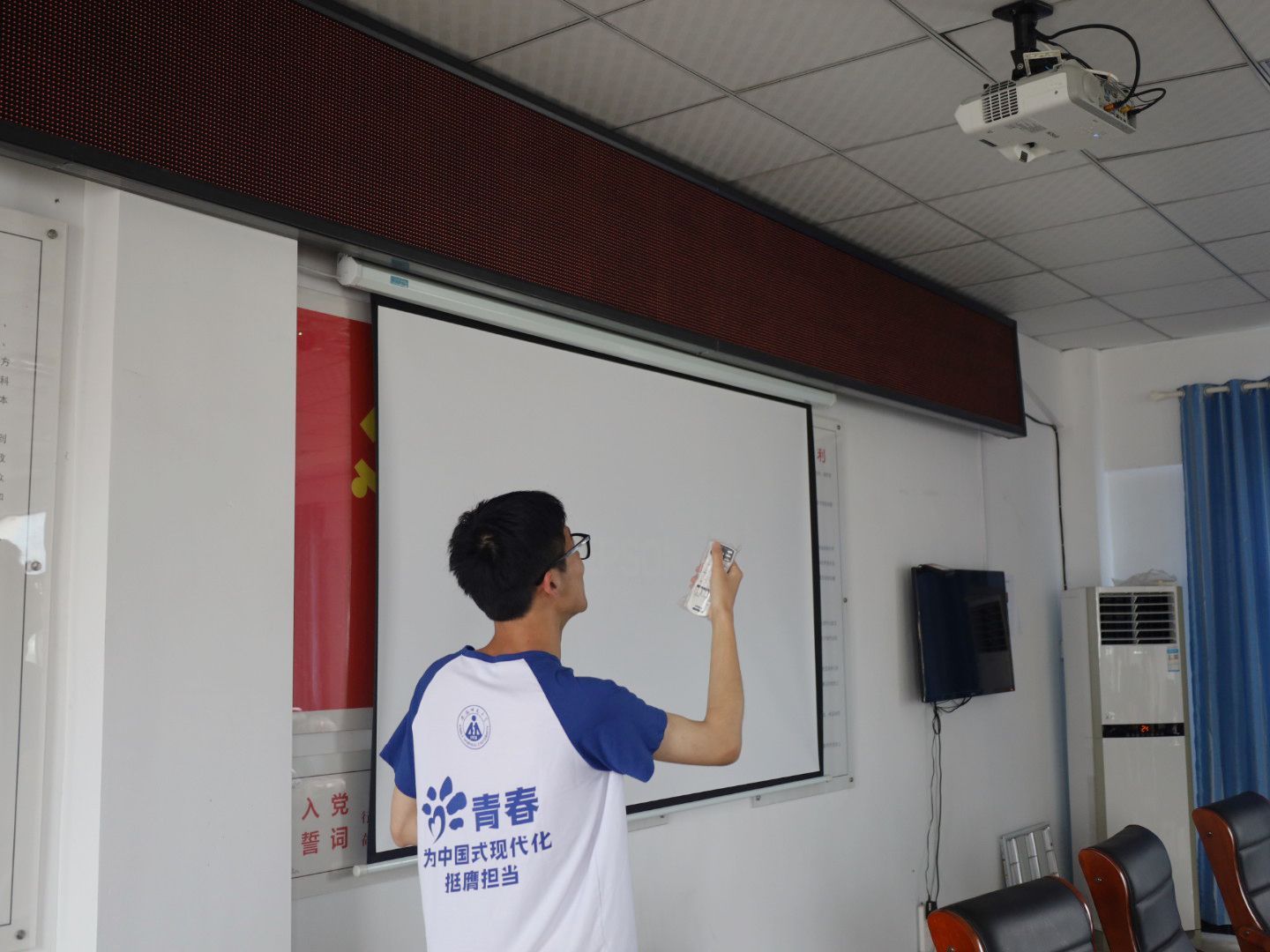 7月9日下午,队员们简单休整后,便满怀激情地投身于教学筹备、田野调研与后勤保障的细致工作中。队长葛一梵与古黄村委会相关负责人程根来老师取得联系后,一部分队员来到古黄村“阳光之家”调试教学设备,为第二天的教学添砖加瓦;一部分同学跟随程老师穿梭于古黄村巷弄,感受独属江南风情的淳朴与宁静。