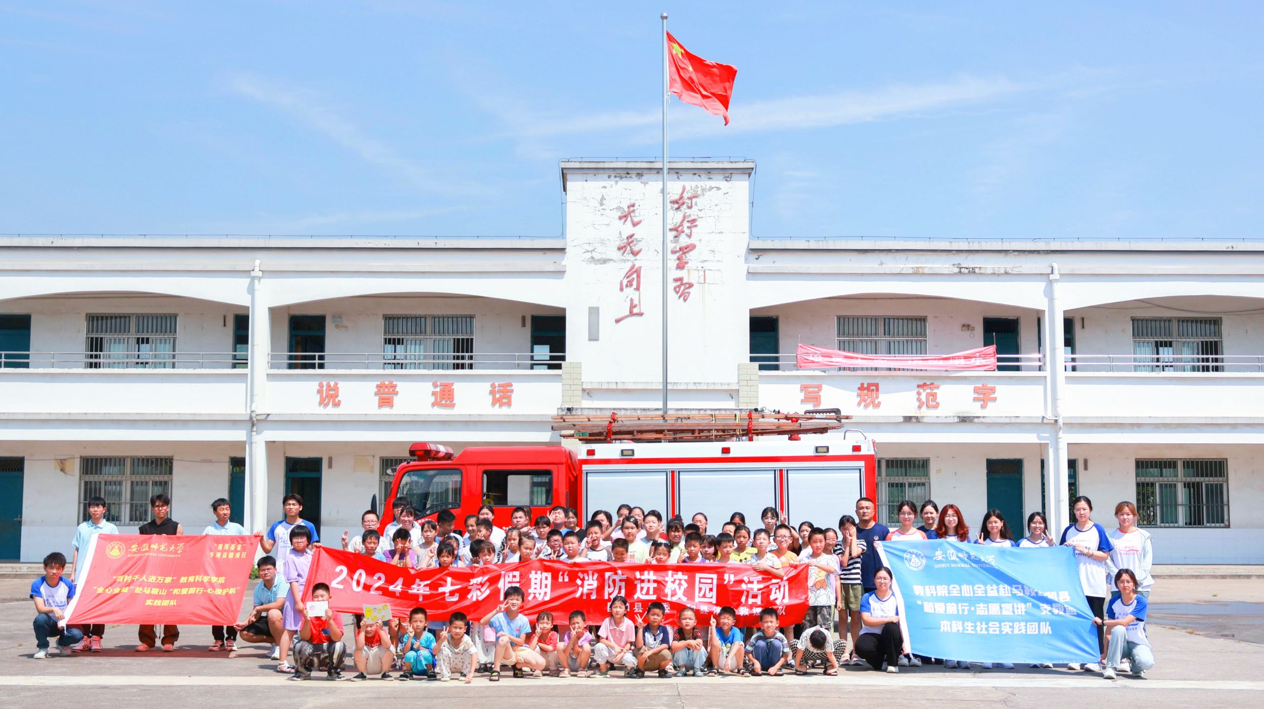 共筑消防安全,筑牢生命防线。为进一步加强学校安全工作,营造安全、稳定、和谐的校园环境,增强学校师生消防安全意识,了解消防安全知识,增强自救互救能力,7月23日,教育科学学院全心全益赴马鞍山和县支教团队与和县消防救援大队共同在龙华小学支教点开展了消防安全主题教育活动。