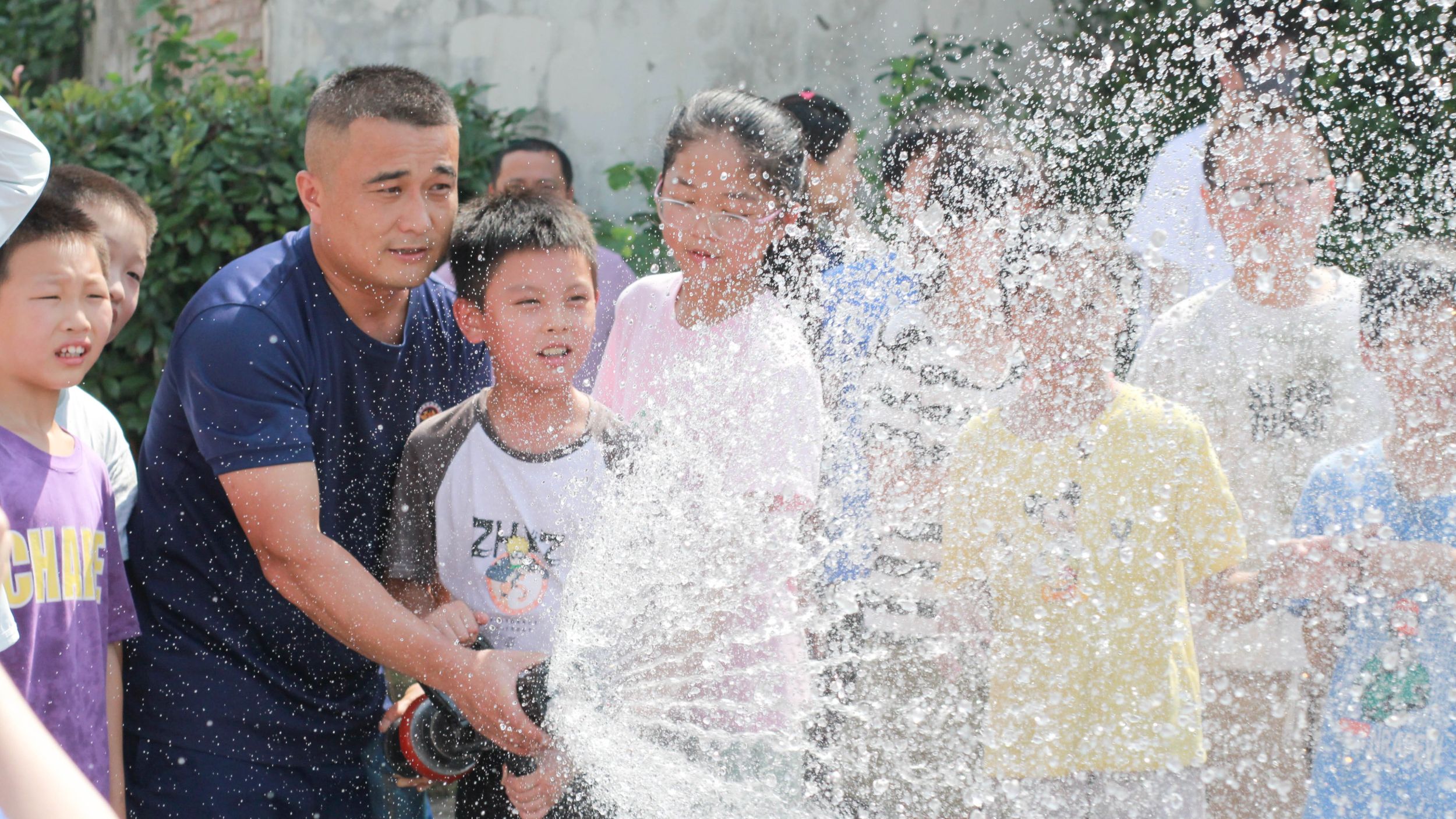 消防安全知识课堂结束后,几位消防员带领同学们到户外认识消防车构造、观看几种常用的消防器材,简单讲解了器材的使用方法,并打开高压水枪演示使用方法,在潜移默化中提升学生消防安全意识,让学生过足“消防瘾”。