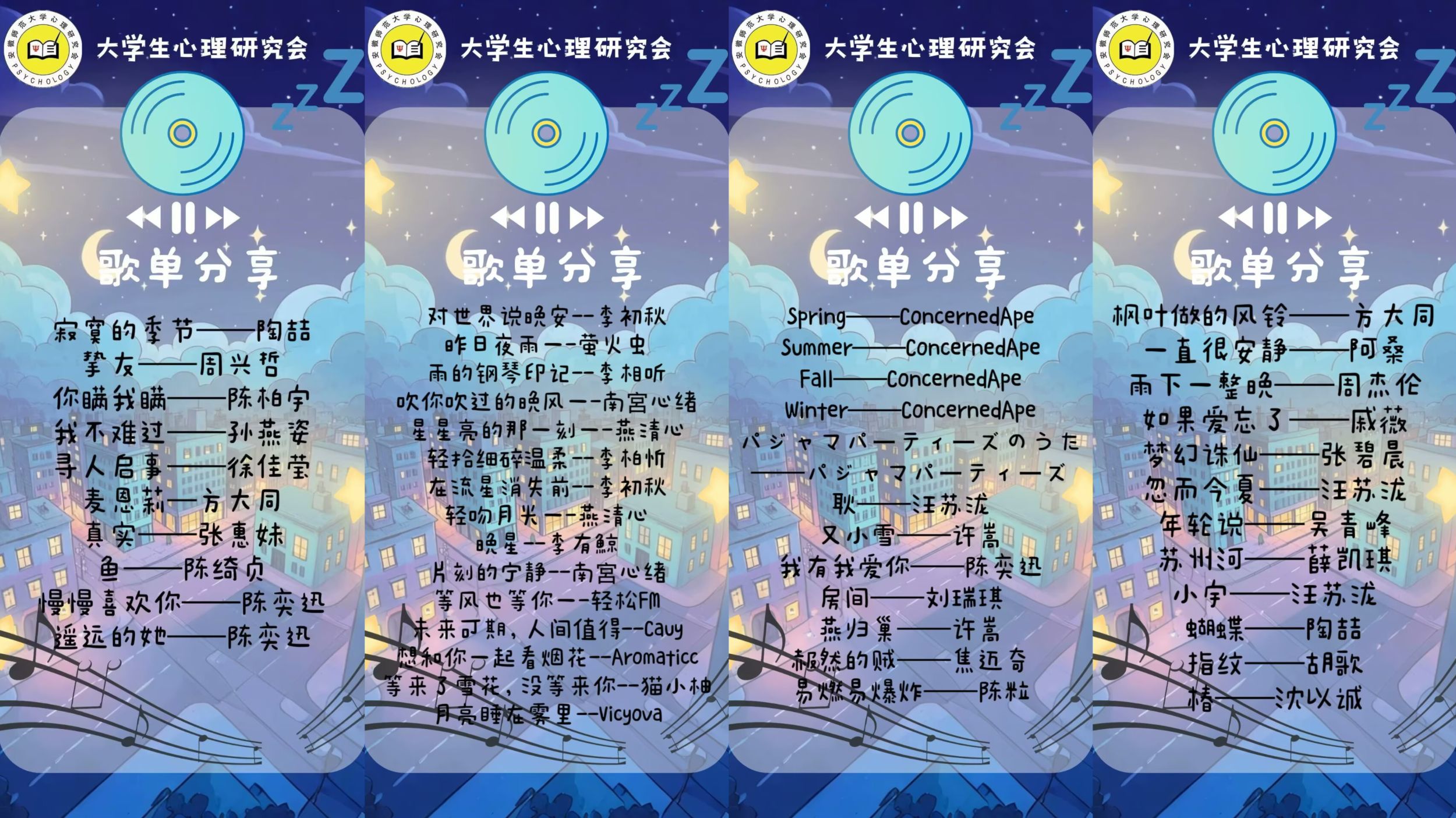 第二项“星河入梦”活动在3月16日至3月19日展开。同学们踊跃分享自己精心制作的睡眠歌单,或舒缓悠扬,或轻柔宁静,每一份歌单都承载着同学们对良好睡眠的期待。工作人员同样将这些歌单整理后通过官方QQ进行分享,引发同学们的热烈讨论与点赞并在五十多位投稿者中为点赞量前七的参与者授予奖品。这些歌单不仅丰富了同学们的音乐库,更为大家提供了更多助眠的音乐选择,帮助同学们在音乐的陪伴下更好地入睡。
