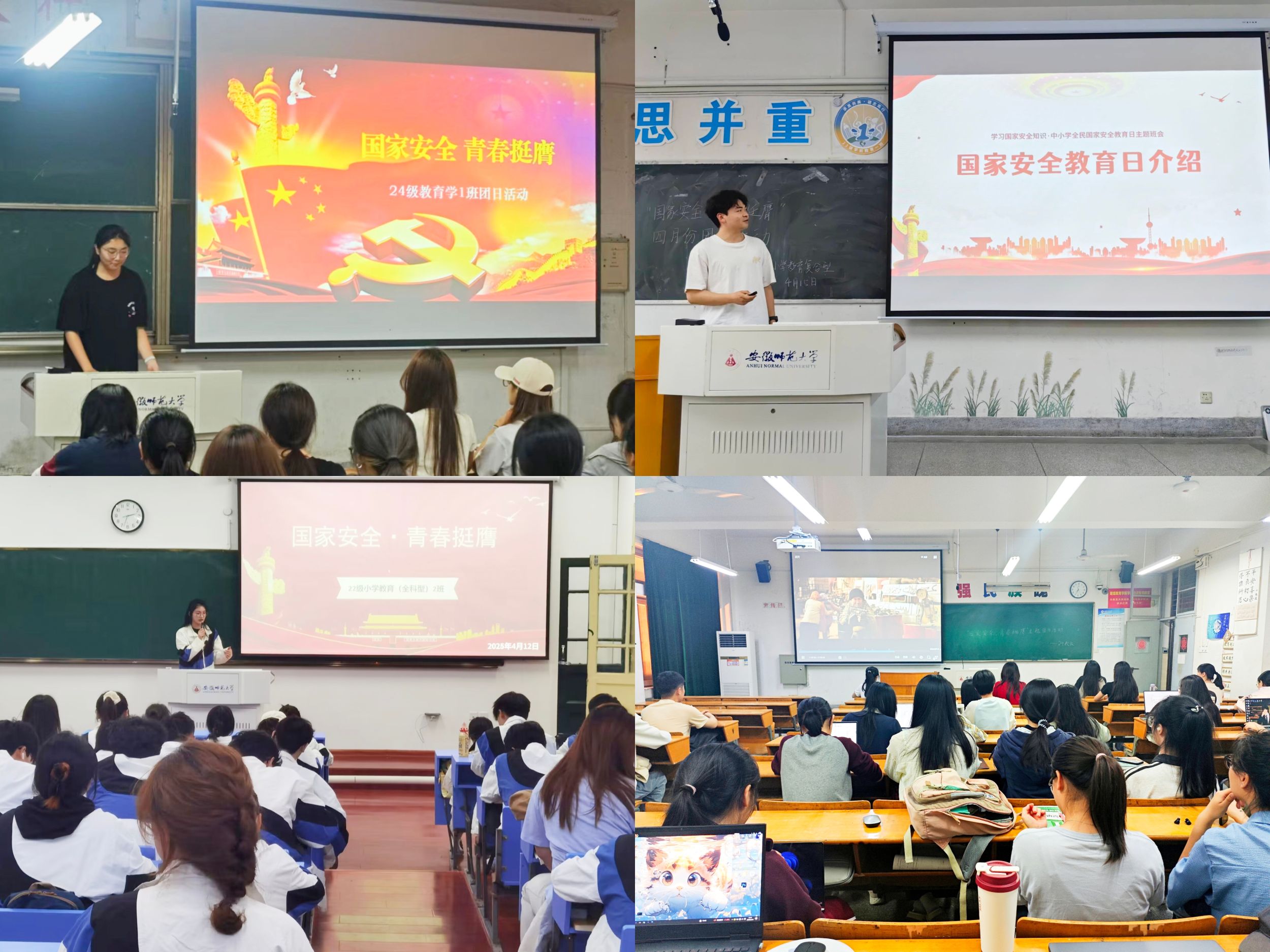 为落实大学生护航行动计划,树牢总体国家安全观,增强青年学生维护国家安全的责任意识,引导学生自觉维护国家安全,在第十个全民国家安全教育日来临之际,教育科学学院以“国家安全 青春挺膺”为主题,组织开展了形式多样的主题团日活动。