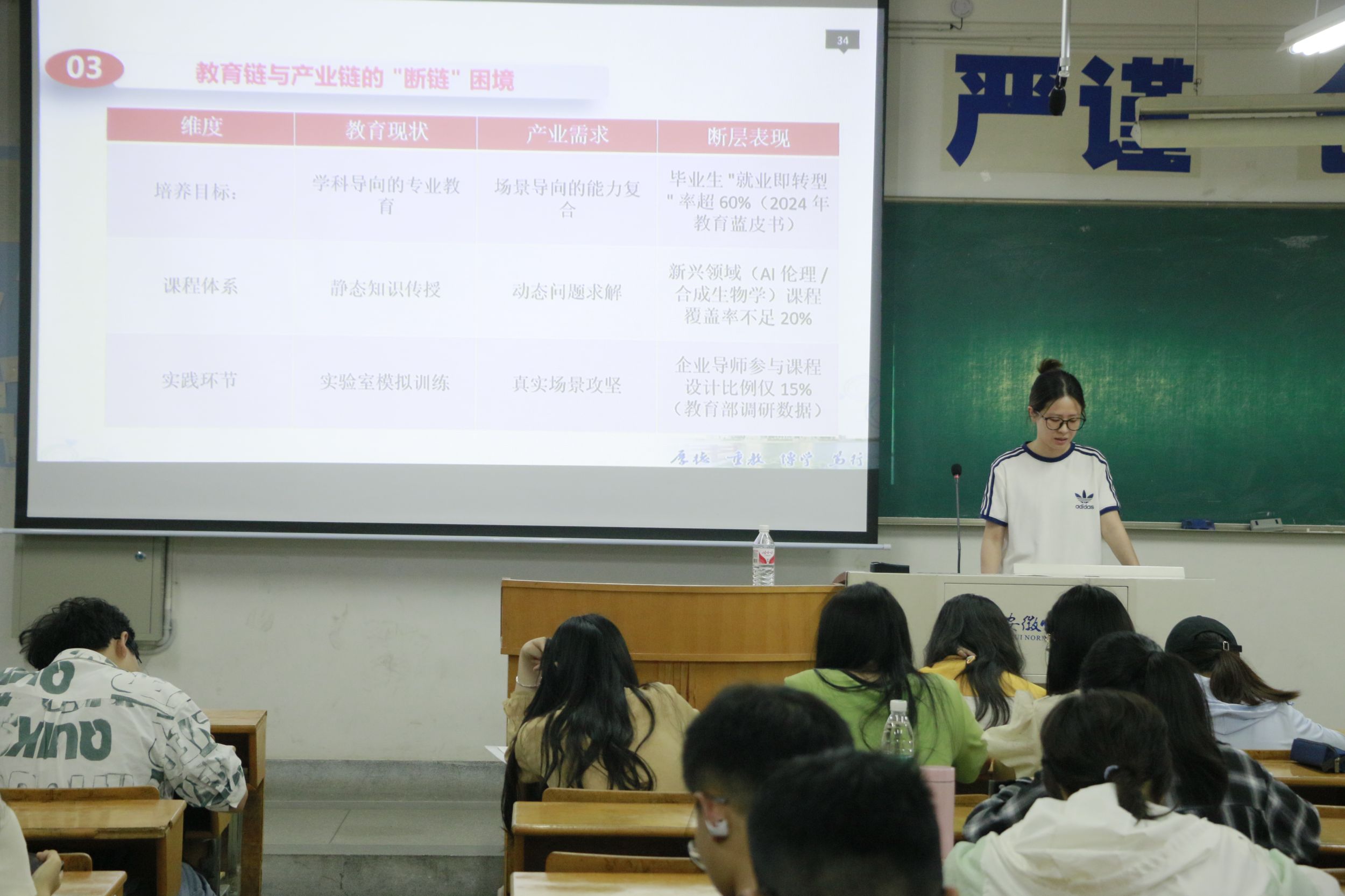 本次宣讲活动内容丰富,郝文莹与余宁桐结合理论与实践,展现了教育与科创融合的思考与探索,为在场学生带来启发,助力大家深入理解教育改革与科创人才培养的关联。