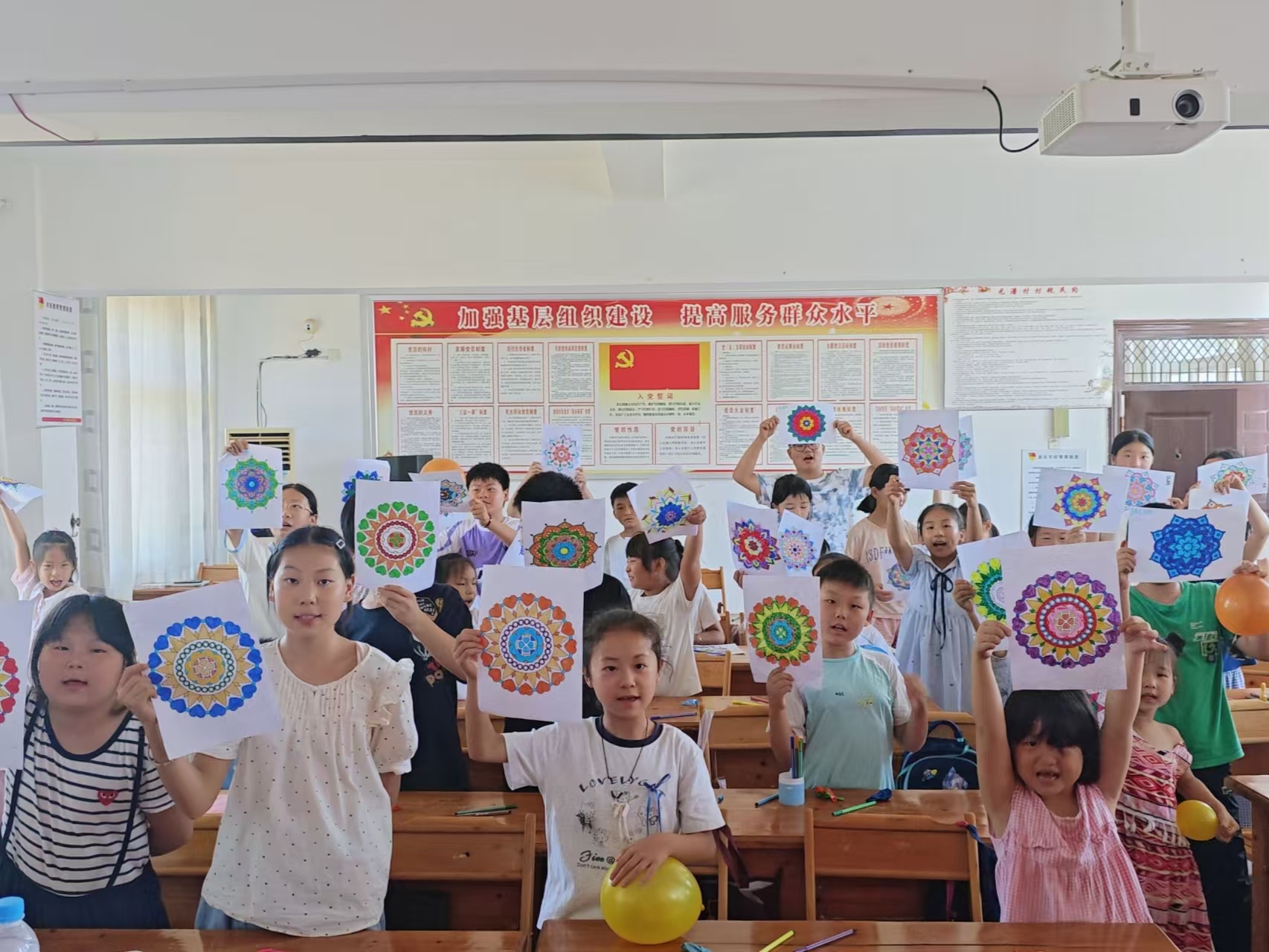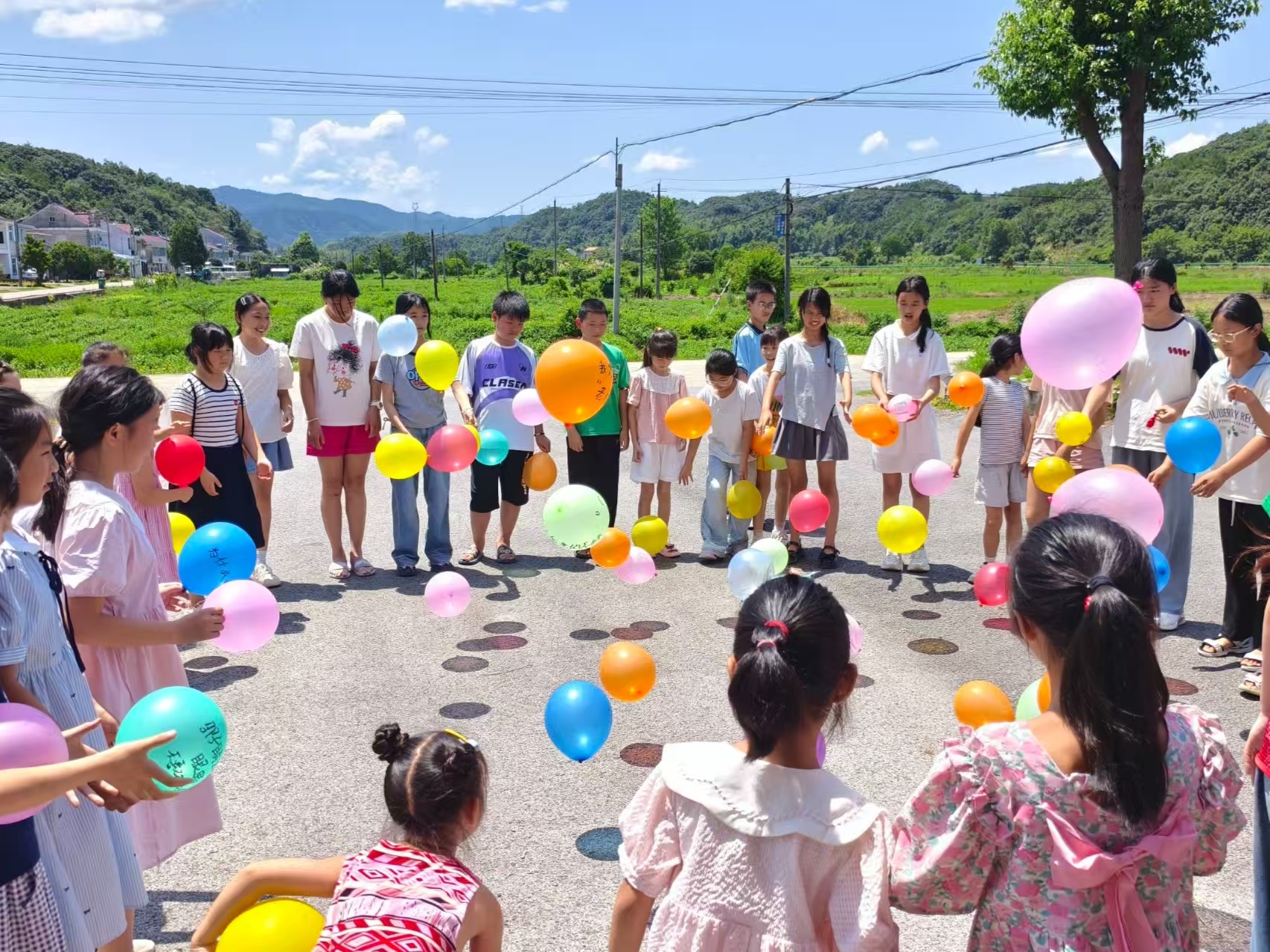 活动以"名字大作战"破冰游戏拉开序幕,孩子们用童趣自我介绍打破隔阂,欢笑声中,孩子们的距离悄然拉近;你画我猜环节里,小组成员以肢体动作语言表达传递词语,孩子们的表现力和创造力得到锻炼,团队协作能力也得到提高;曼陀罗心理绘画时,孩子们用麦穗黄、秧苗绿等自然色系填涂图案,将田园意象融入内心表达;压轴的"气球爆破赛"中,写满烦恼的气球在田垄间炸裂,让压力随碎片散落田间。