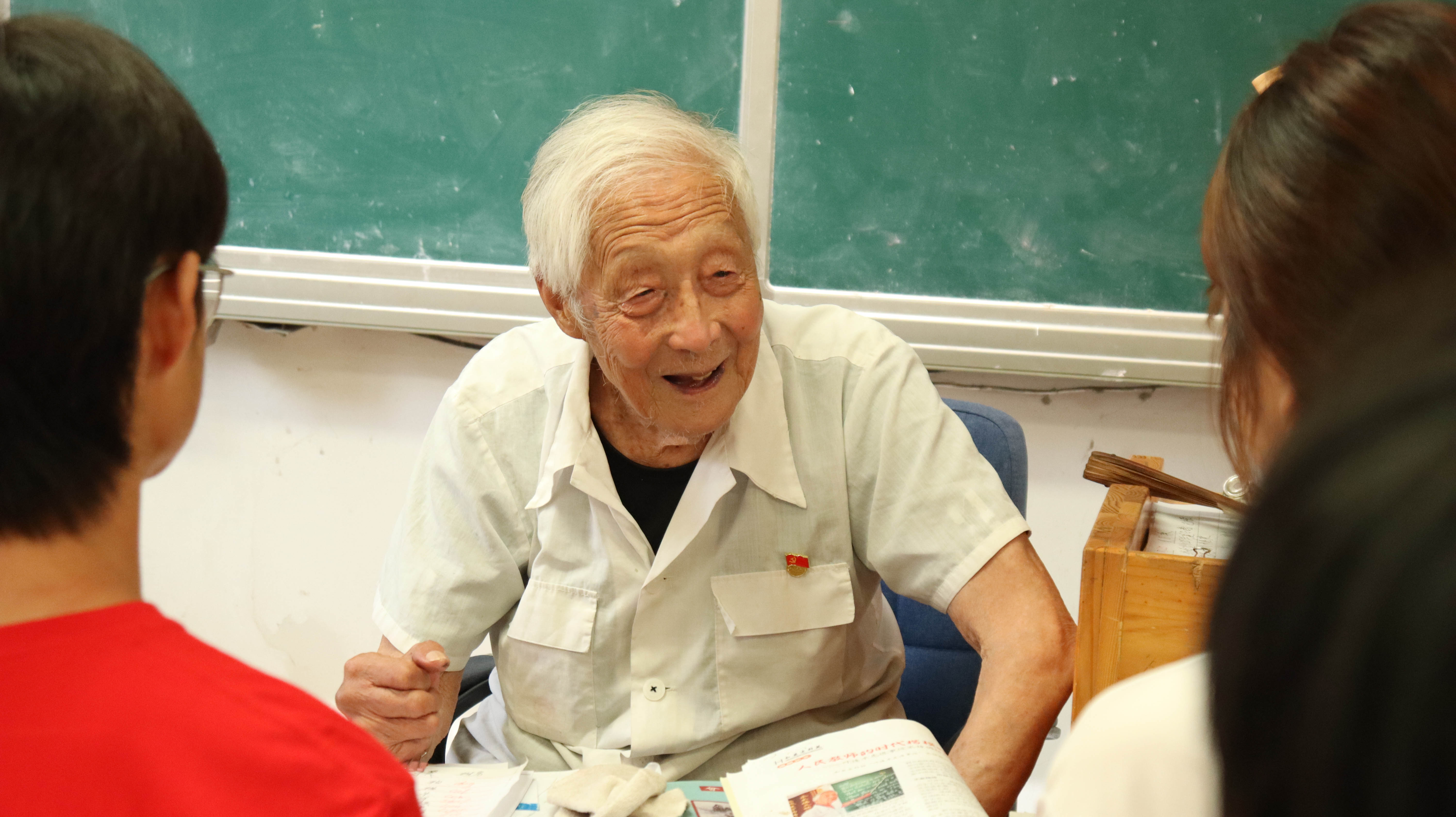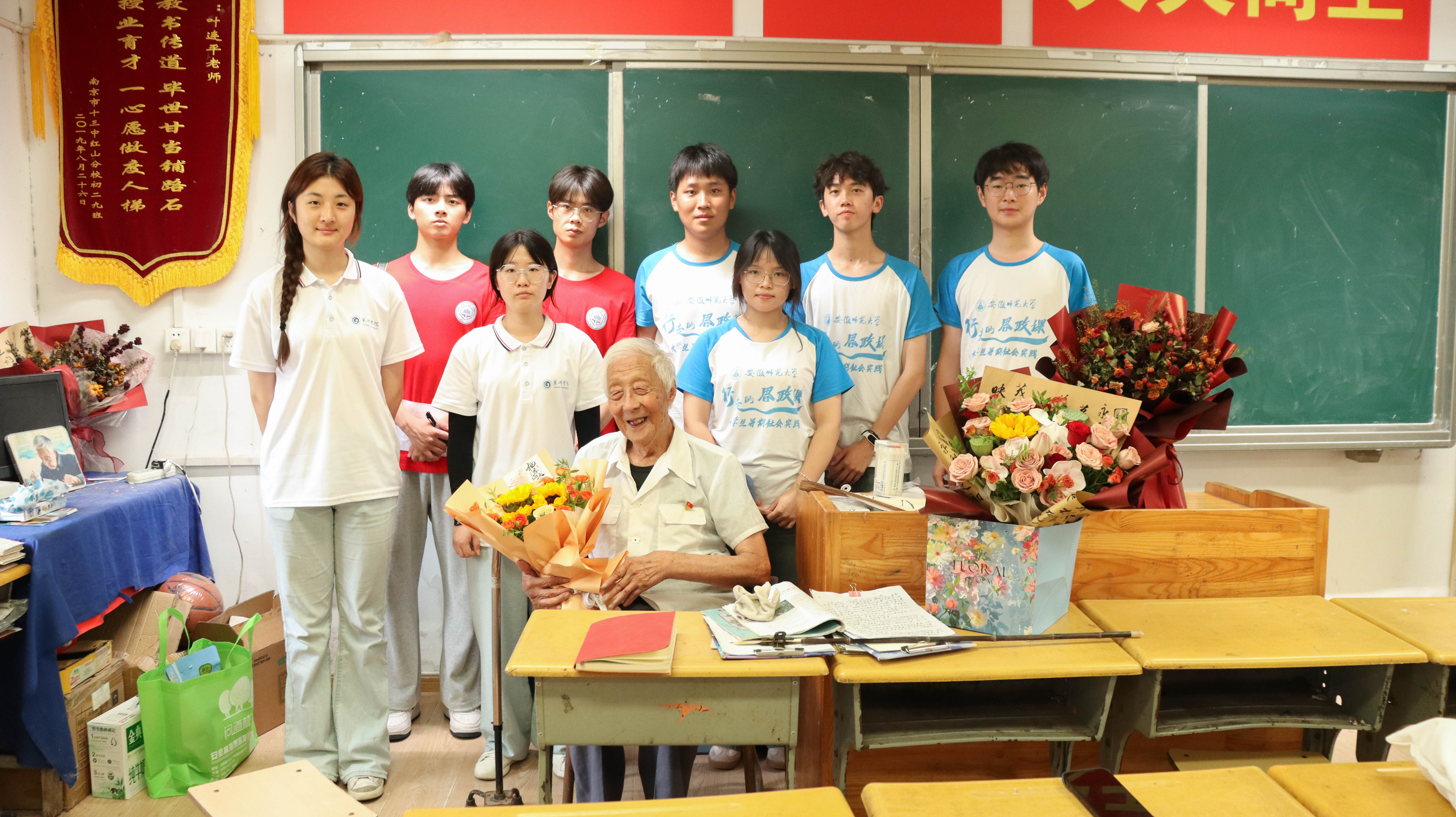 7月9日下午,安徽royal皇家88平台师生一行,怀着崇敬之心步入和县乌江镇卜陈村叶连平老先生的“留守未成年人之家”。这位九十岁高龄的老教师,此刻正佝偻着身躯在黑板前批改作业,粉笔灰细密地落满他旧中山装的袖口——这幅宁静画面,无声诉说着一位乡村教育者生命深处的执着。