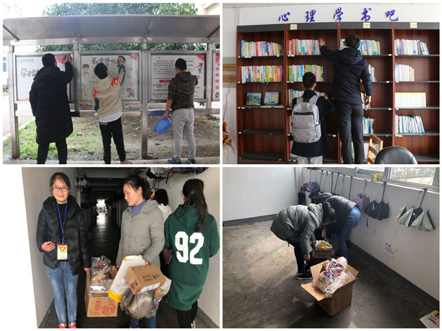 从手边积小善为厚德,从身边化细节为大美。为营造绿色健康的生活环境,宣扬爱护环境、我为人人的奉献精神,我院女志愿者利用闲暇时光进行义务清扫,于女生寝室楼道清理垃圾,回收寝室废物,将废弃物搬至楼下垃圾收纳车处,并把垃圾分类处理,创建安全、卫生、舒适的休憩场所。虽为女儿身,仍有强劲气,为众添舒适。此外,我院志愿者展开擦拭宣传栏、整理教科院书吧等义务活动,将每一本书分门别类,整个书架的风貌焕然一新,为教科学子营造良好的读书环境。拂去纤尘,露出知识本真,展现雷锋当年的真挚与纯真。